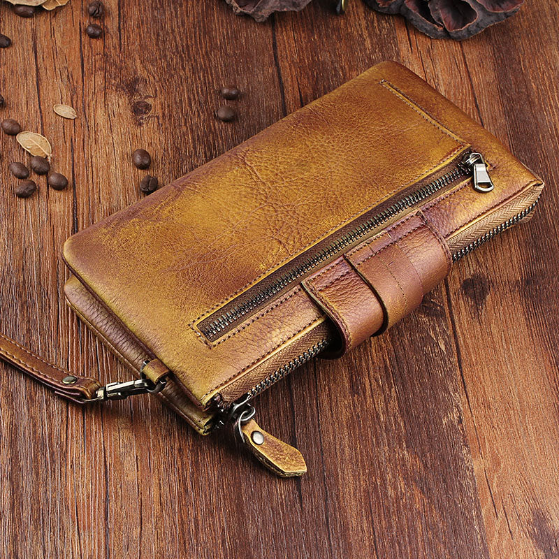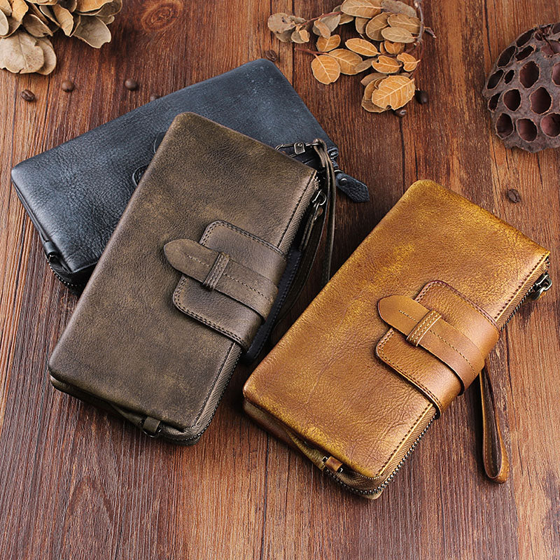 Style: Handmade Mens Cool Long Leather Chain Wallet Cards Biker Trucker Wristlet Wallet