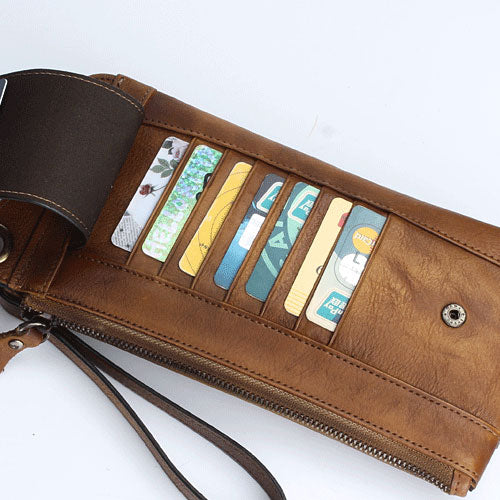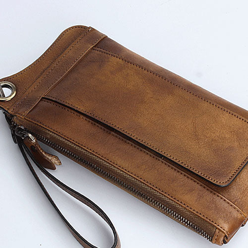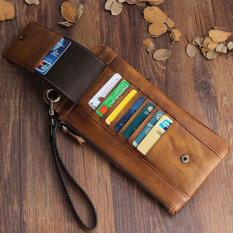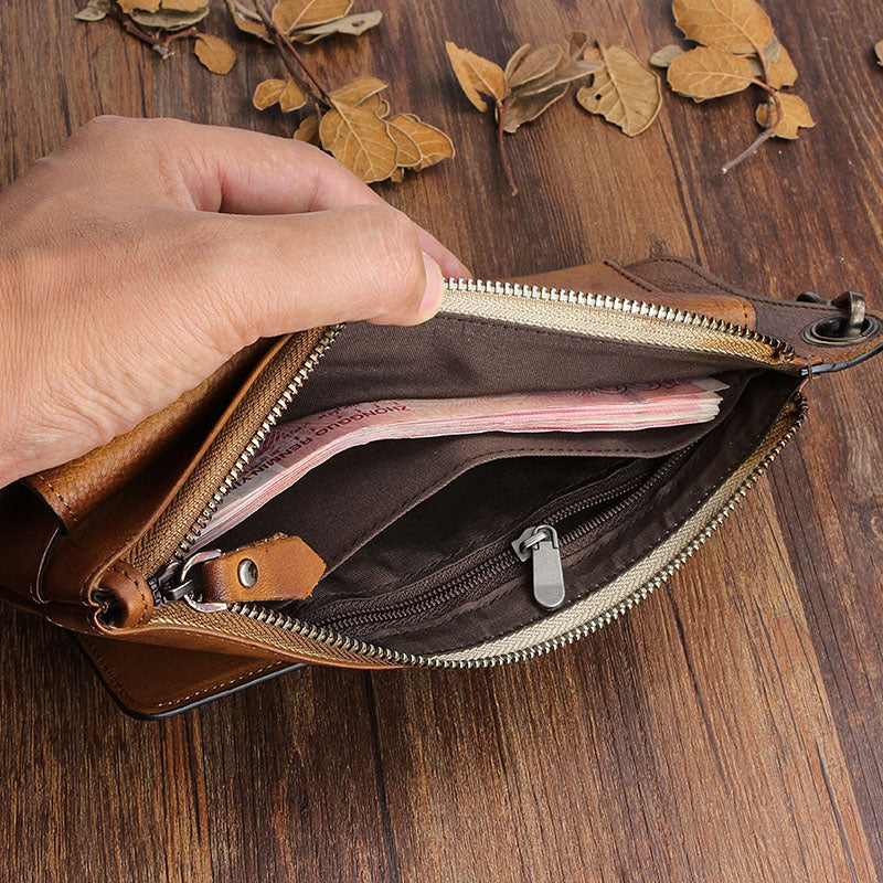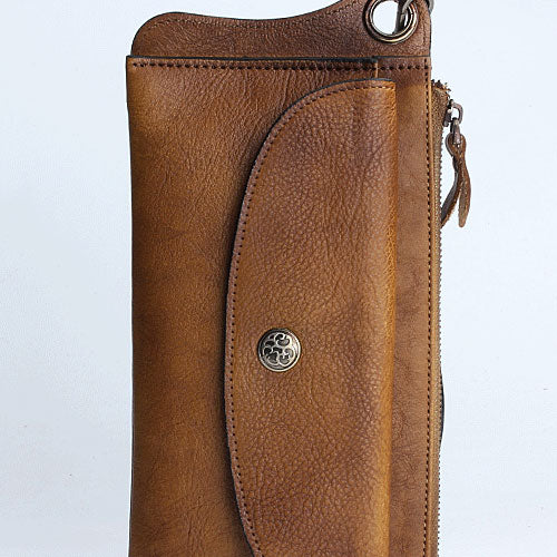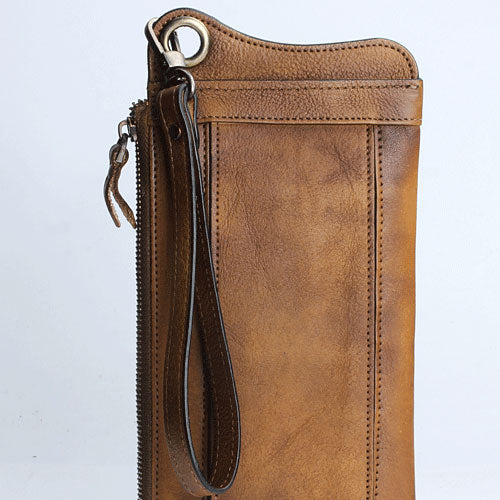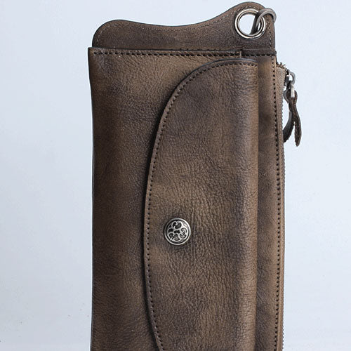 Style: Handmade Mens Cool Long Leather Chain Wallet Cards Biker Trucker Wristlet Wallet