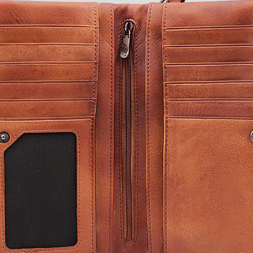 Slots: 2 full size bill slot, 12 card holders, 1 phone slot,1 phone slot, 1 zipper slot, 2 photo slots,