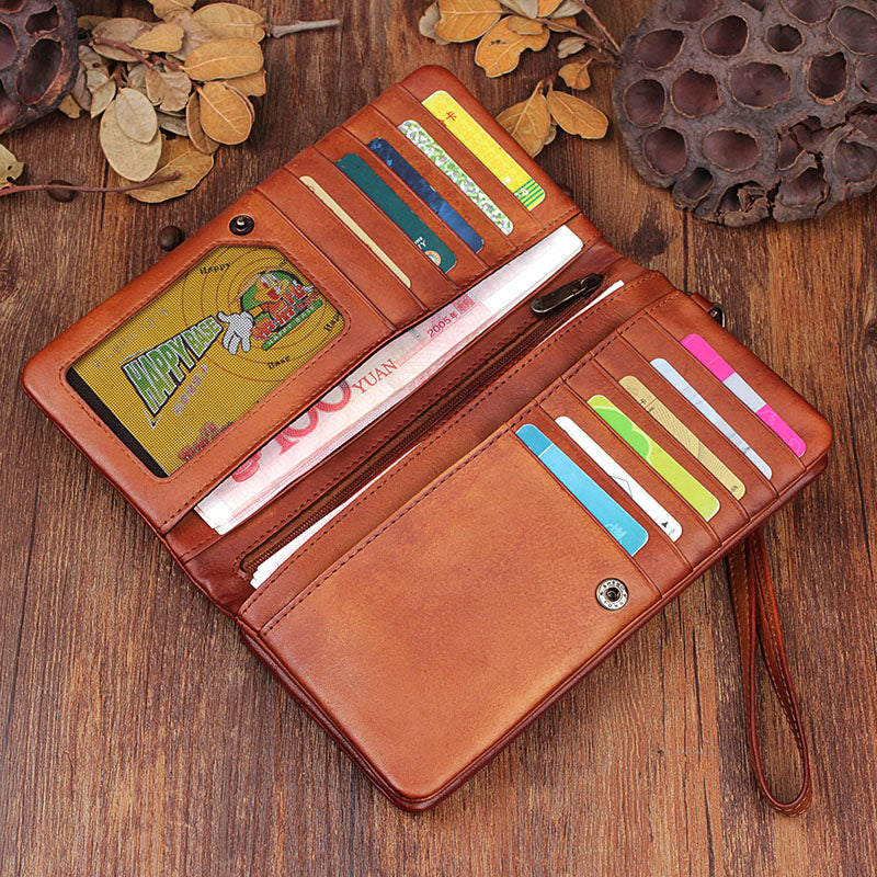 Design: Handmade Mens Cool Long Leather Chain Wallet Cards Biker Trucker Wristlet Wallet