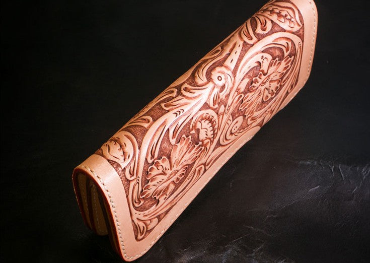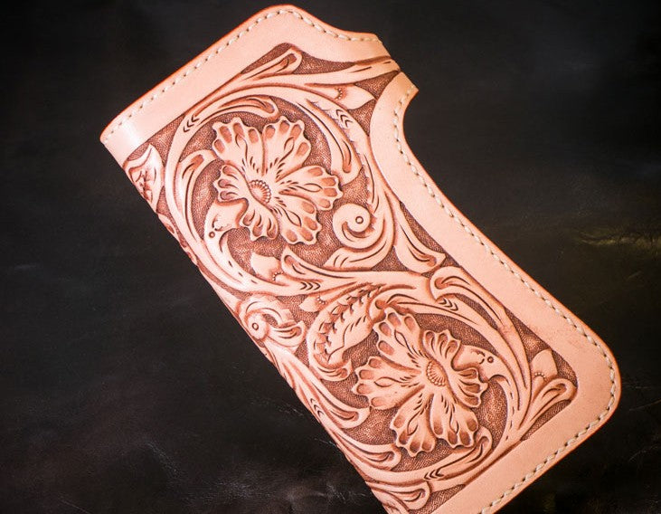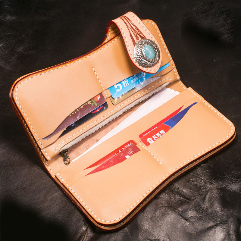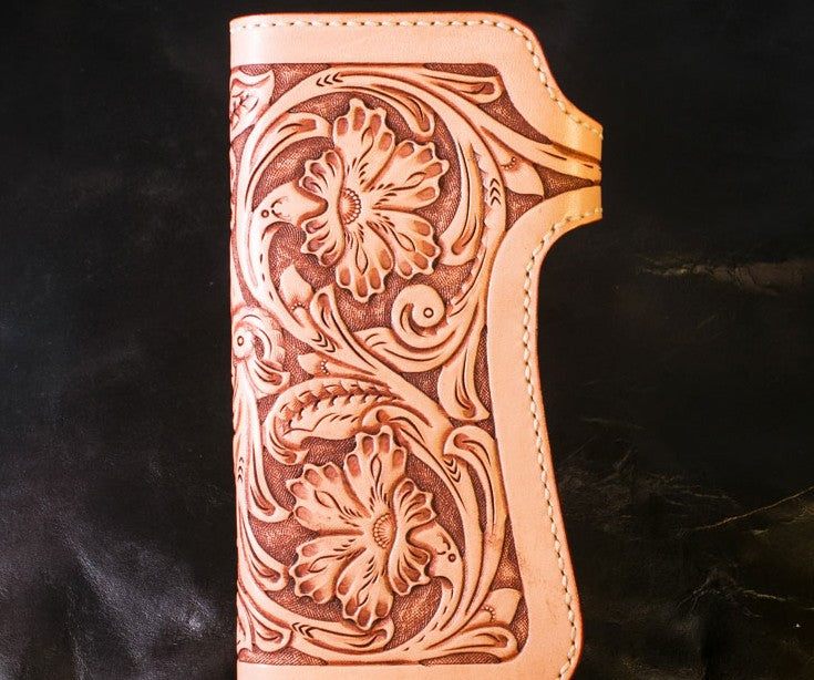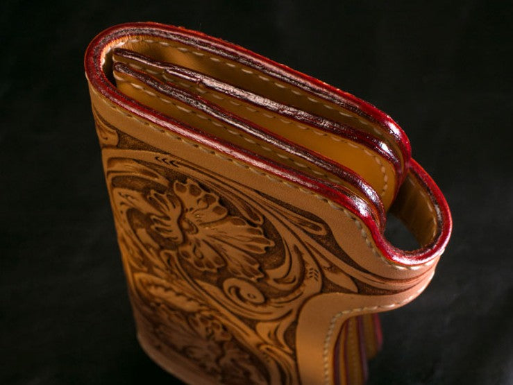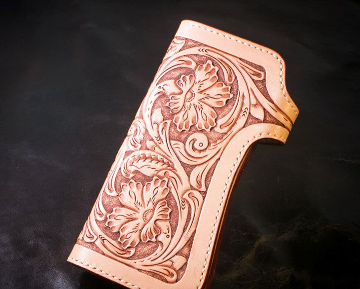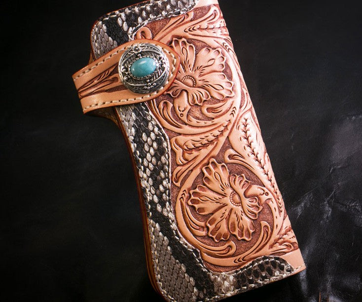 Style: Handmade Mens Cool Tooled Boa Skin Floral Leather Chain Wallet Biker Trucker Wallet with Chain