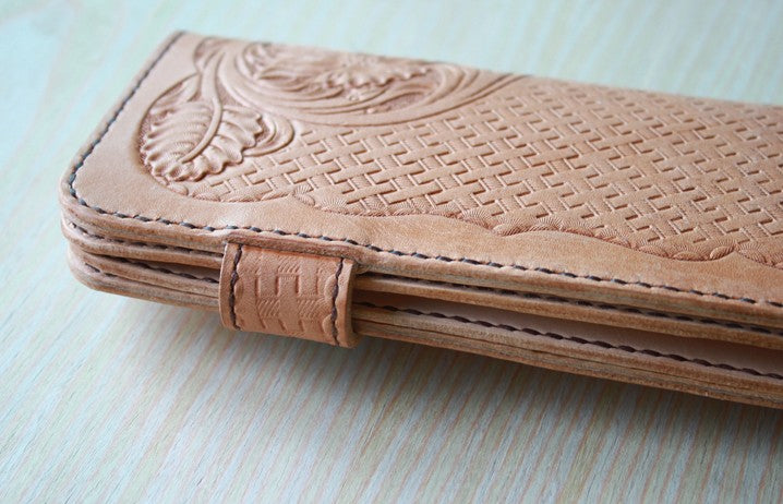 Design: Handmade Tooled Floral Mens Leather Long Biker Wallet Cool Long Chain Wallet for Men