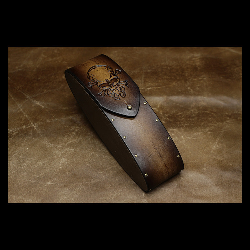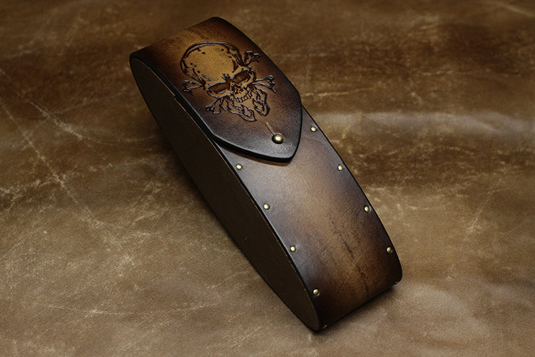Style: Handmade Mens Womens Tooled SKull Wooden Leather Glasses Case Glasses Box Glasses Holder Eyeglass Case