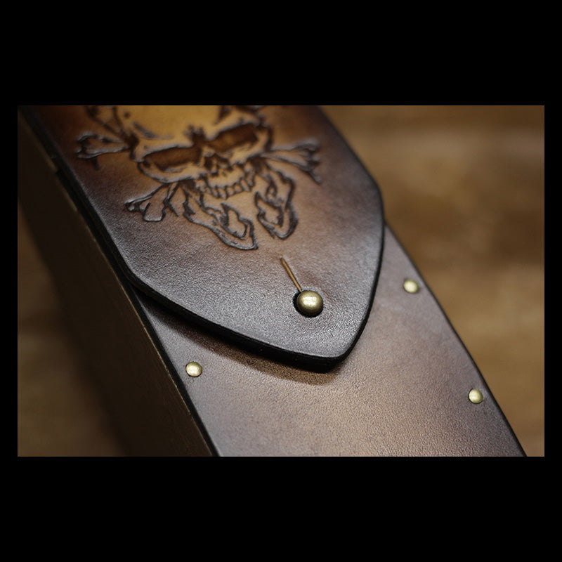 Design: Handmade Mens Womens Tooled SKull Wooden Leather Glasses Case Glasses Box Glasses Holder Eyeglass Case