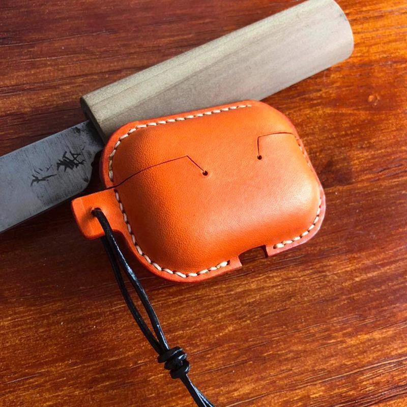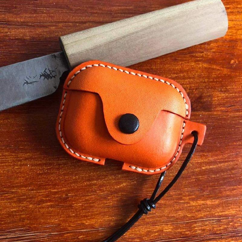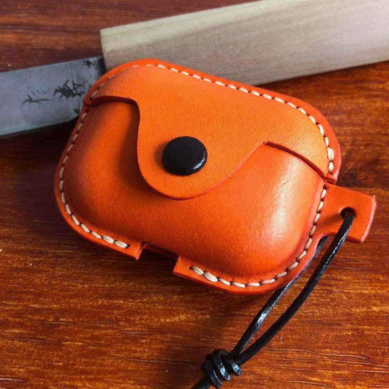 Style: Handmade Orange Leather AirPods Pro Case Leather AirPods Case Airpod Case Cover