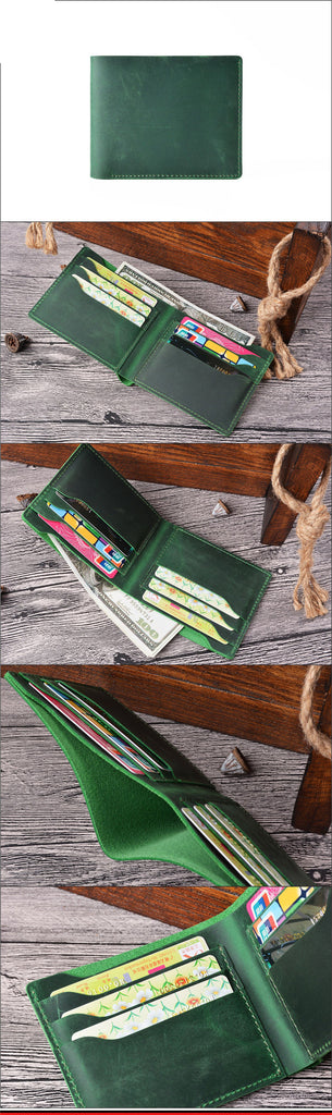 Design: Vintage Brown Leather Men's Small Bifold Wallet Black Slim billfold Wallet For Men