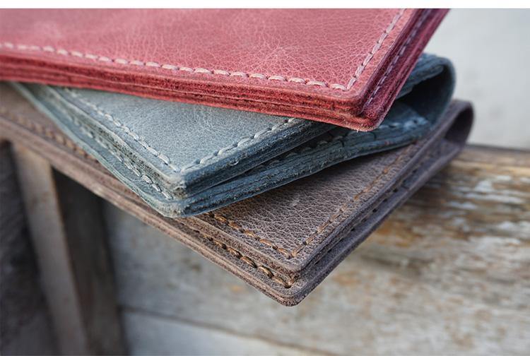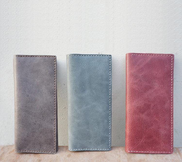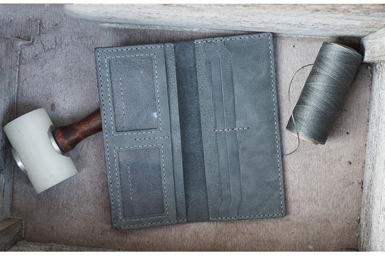 Design: Handmade Slim Checkbook Wallet Khaki Leather Mens Bifold Long Wallet Lots Cards Long Wallet for Men