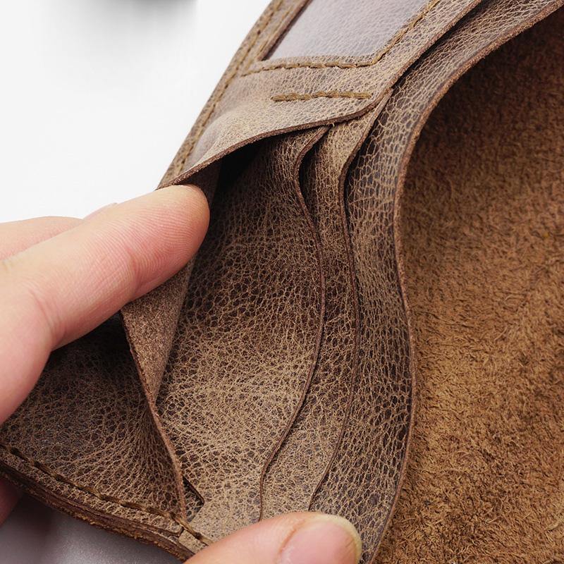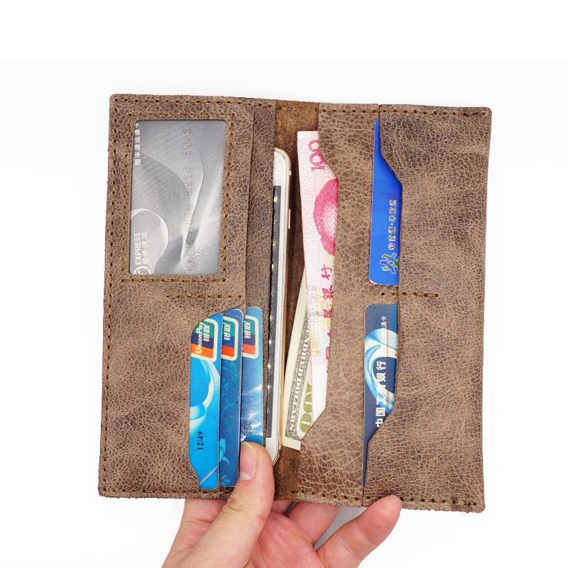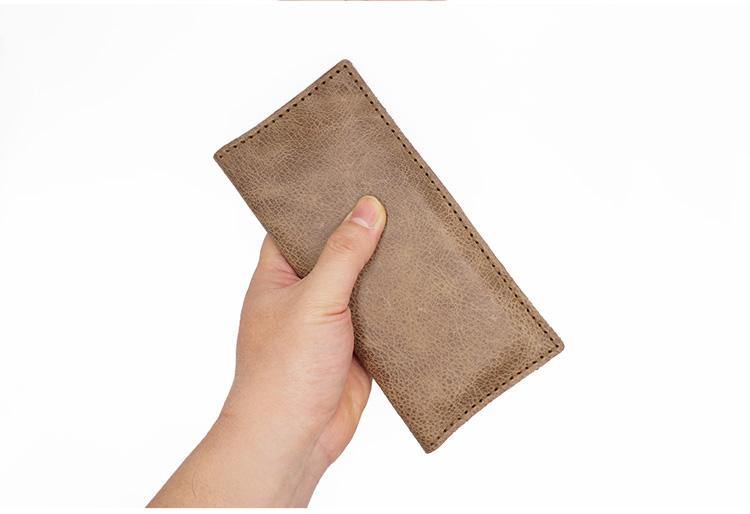 Design: Handmade Slim Checkbook Wallet Leather Mens Bifold Long Wallet Lots Cards Long Wallet for Men