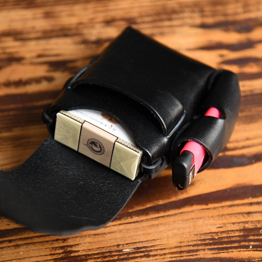 Design: Handmade Black Leather Mens Cigarette Case with Lighter Holder Belt Loop for Men