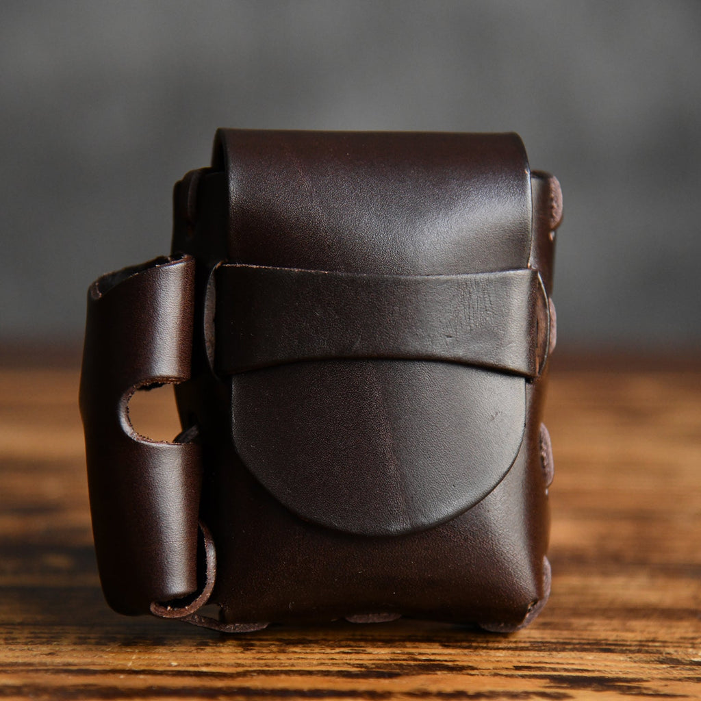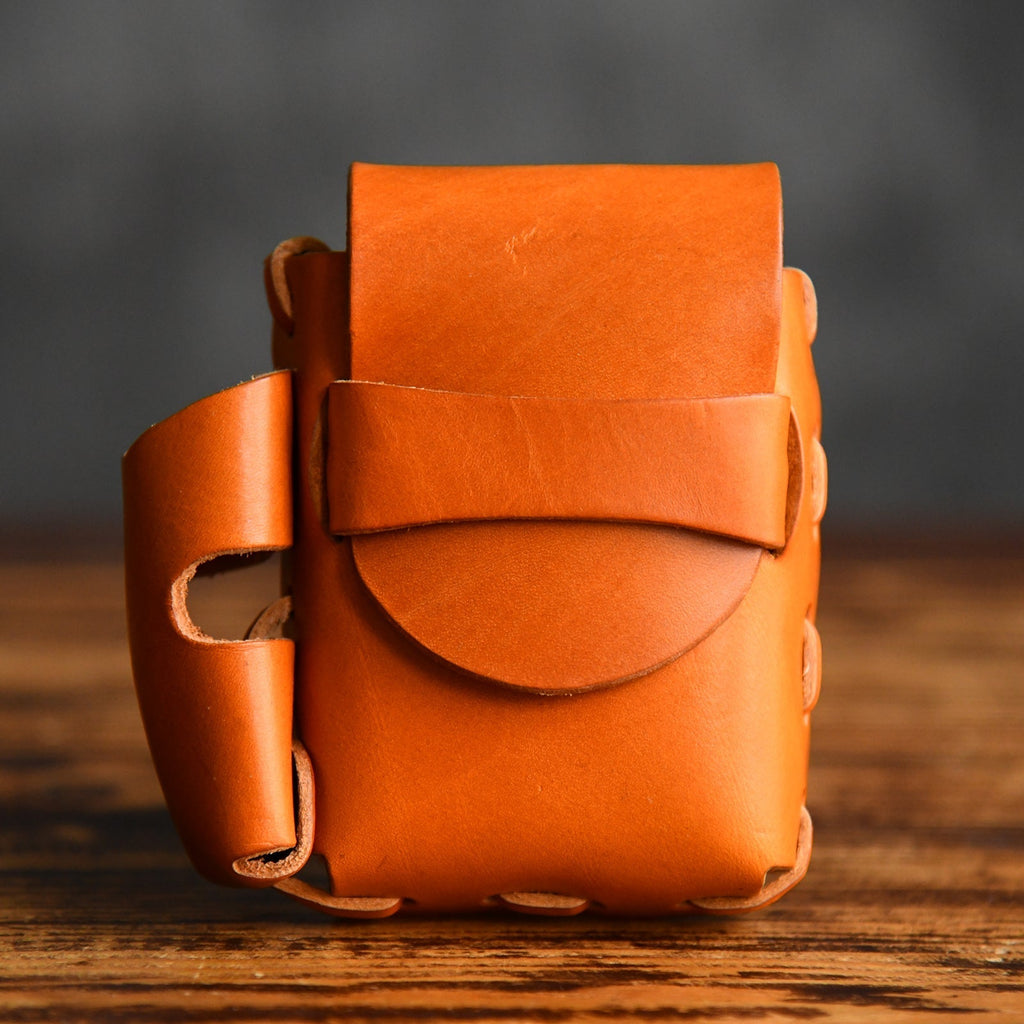 Handmade Tan Leather Mens Cigarette Case with Lighter Holder Belt Loop for Men