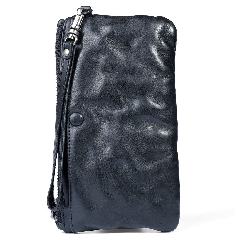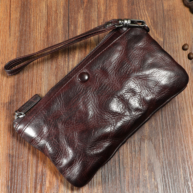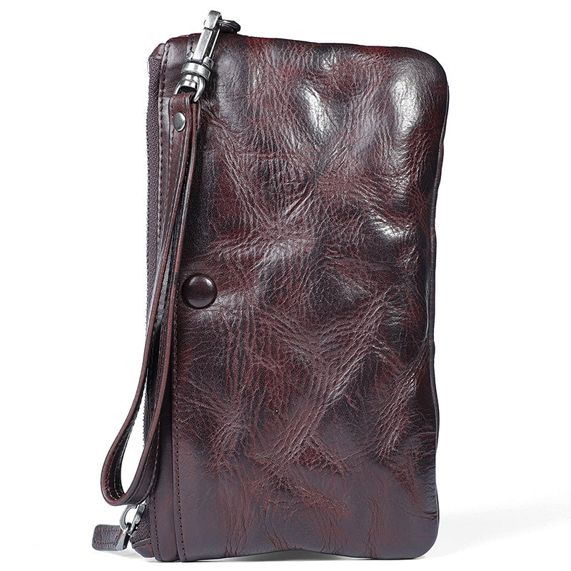 Design: Handmade Wrinkled Leather Mens Brown Cool Long Leather Wallet Multi-function Clutch Wallet for Men