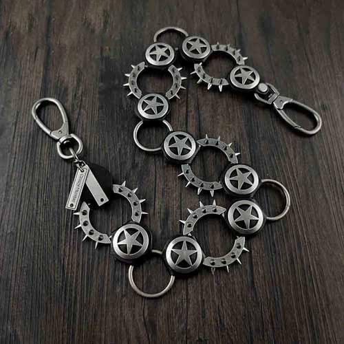 Design: Punk Star Biker Wallet Chains Silver Mens Long Pants Chain Silver Jeans Chain for Men