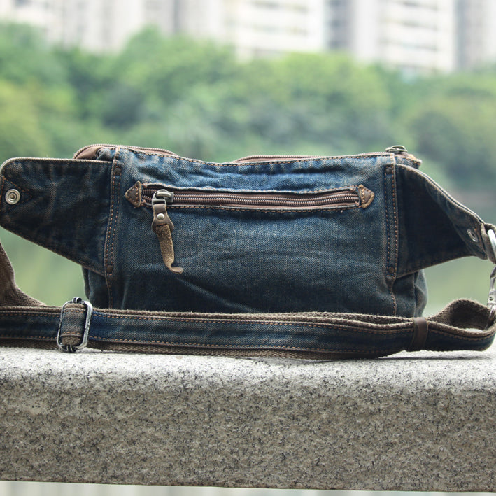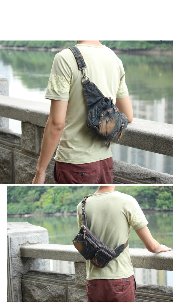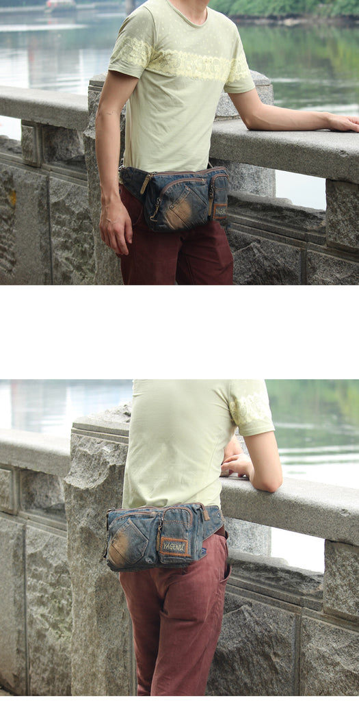 Style: Jean Denim Blue Mens Small Fanny Pack Waist Bag Blue Hip Bag Bum Bags For Men