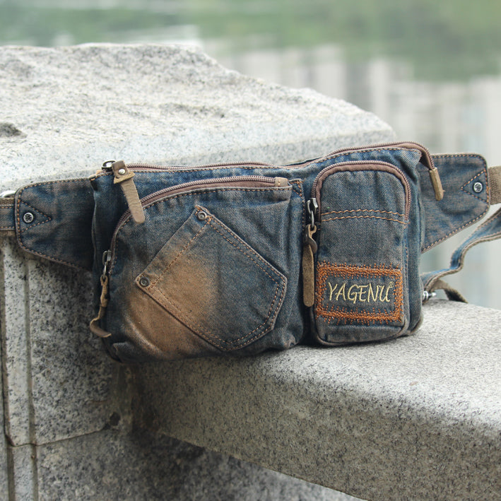 Design: Jean Denim Blue Mens Small Fanny Pack Waist Bag Blue Hip Bag Bum Bags For Men