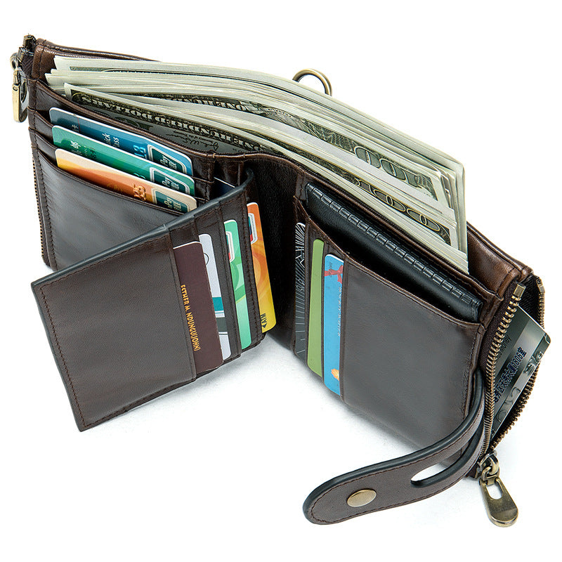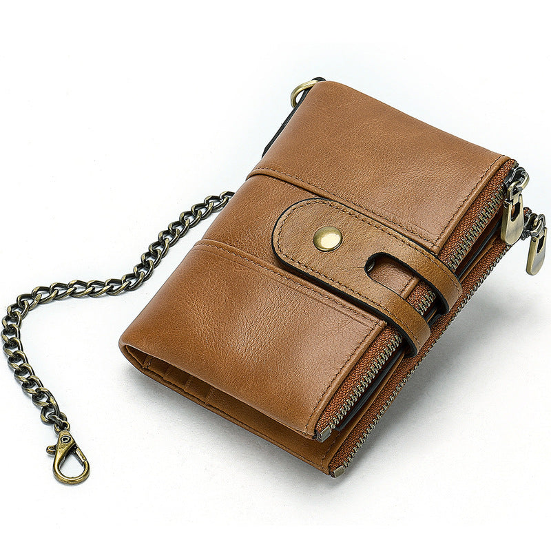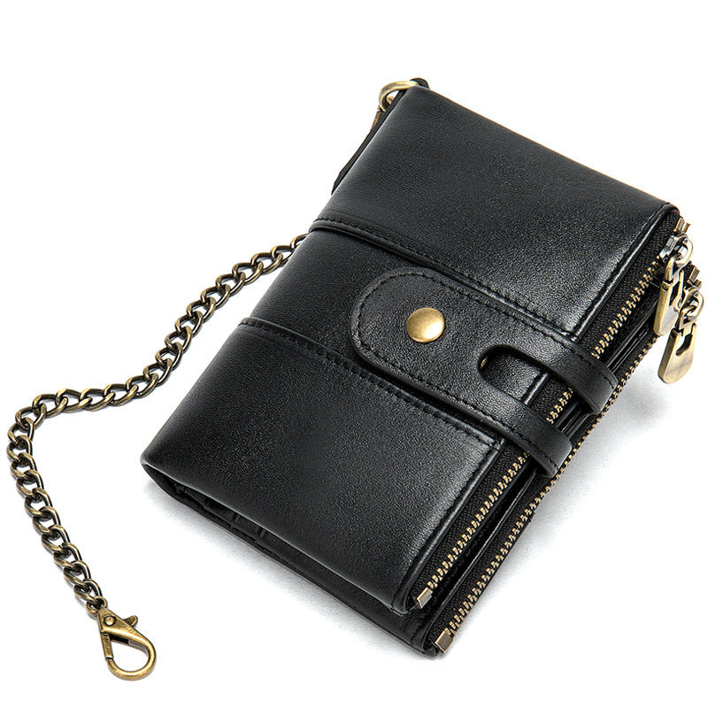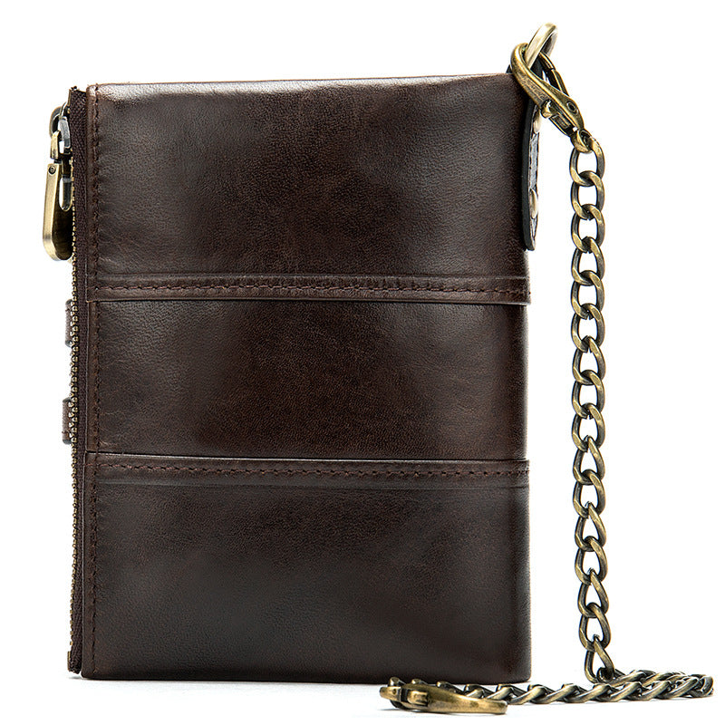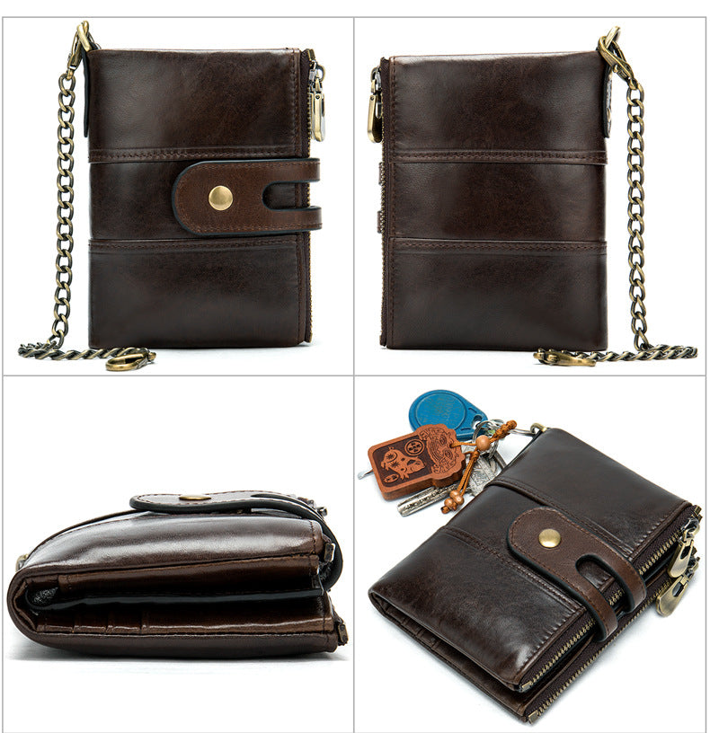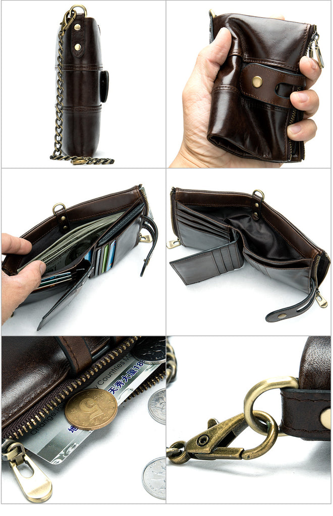 Design: Cool Brown Leather Men's Biker Chain Wallet Black Small Wallet with Chain For Men