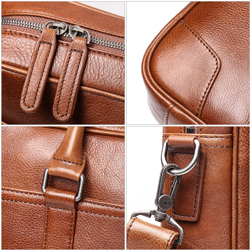 Design: Vintage Brown Leather Men's Professional Briefcase 15‘’ Laptop Briefcase Work Handbag For MenOverview: