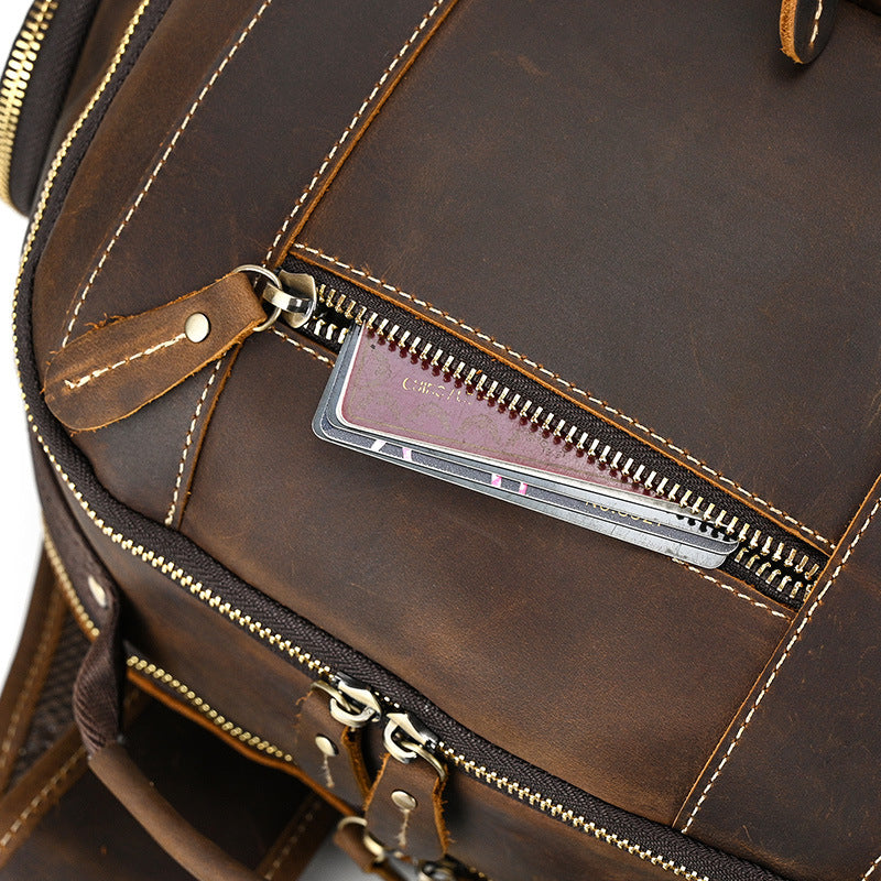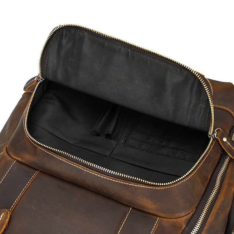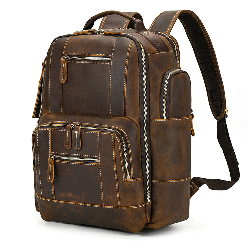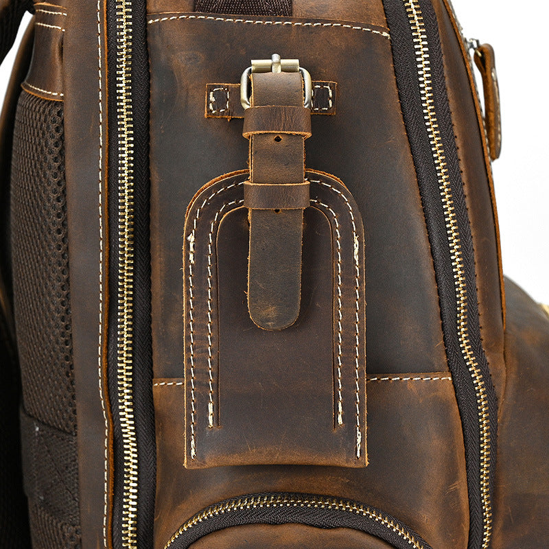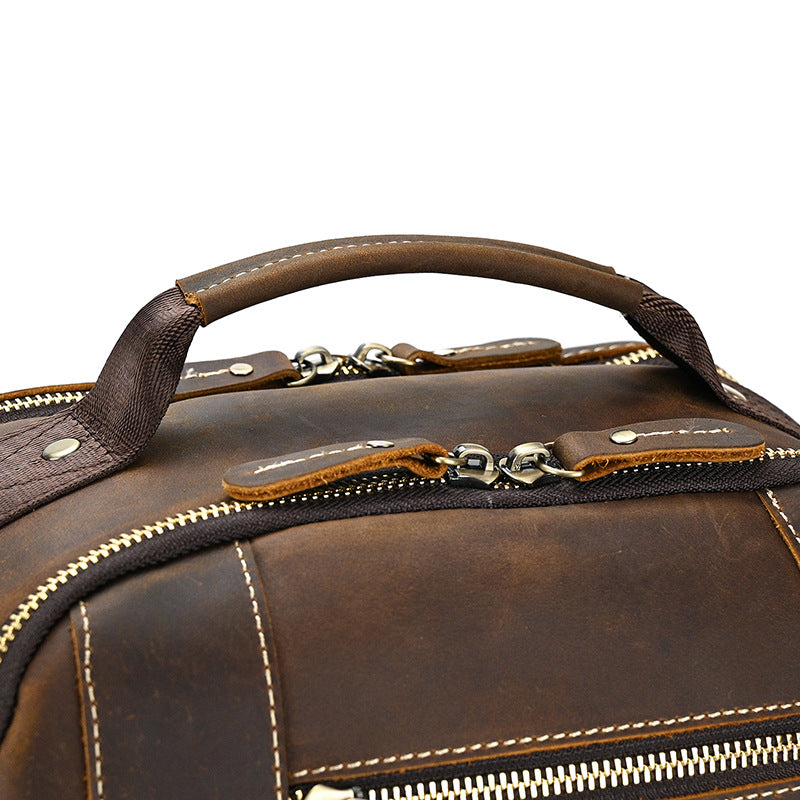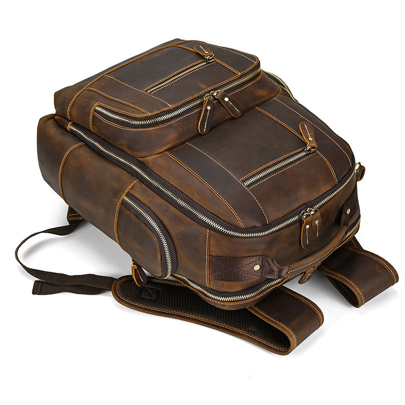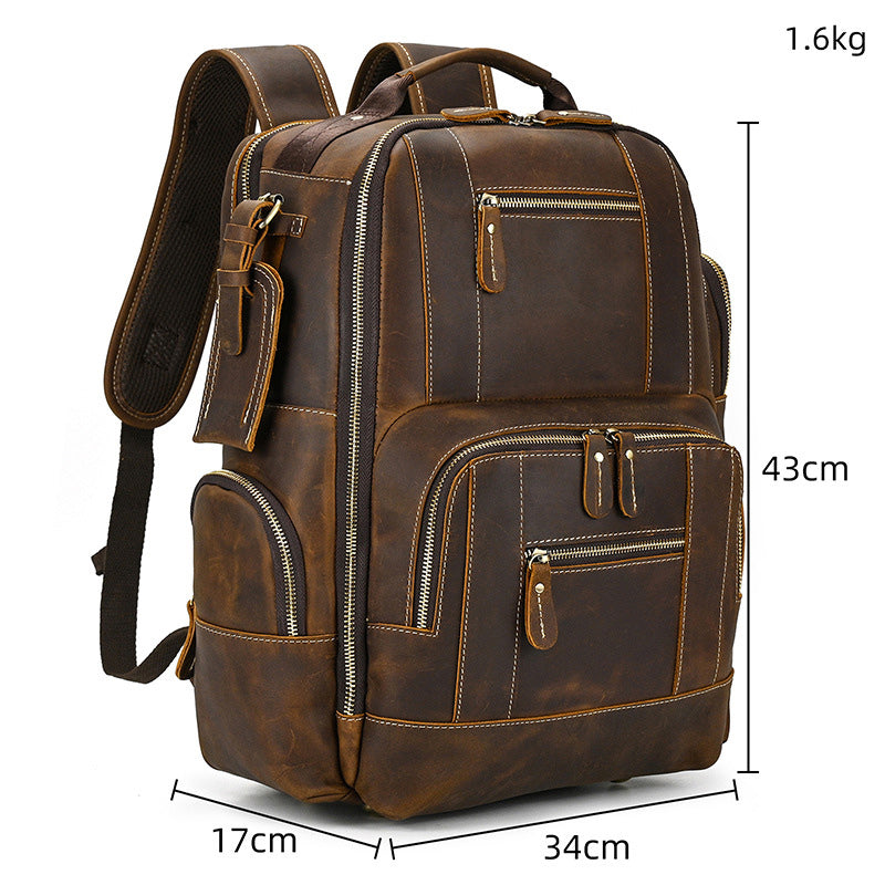 Style: Large Leather Mens Travel Backpack Laptop Backpack Leather Rollup Backpack For Men