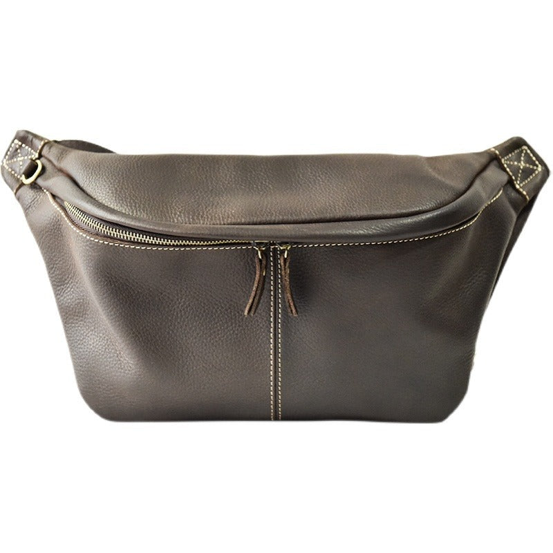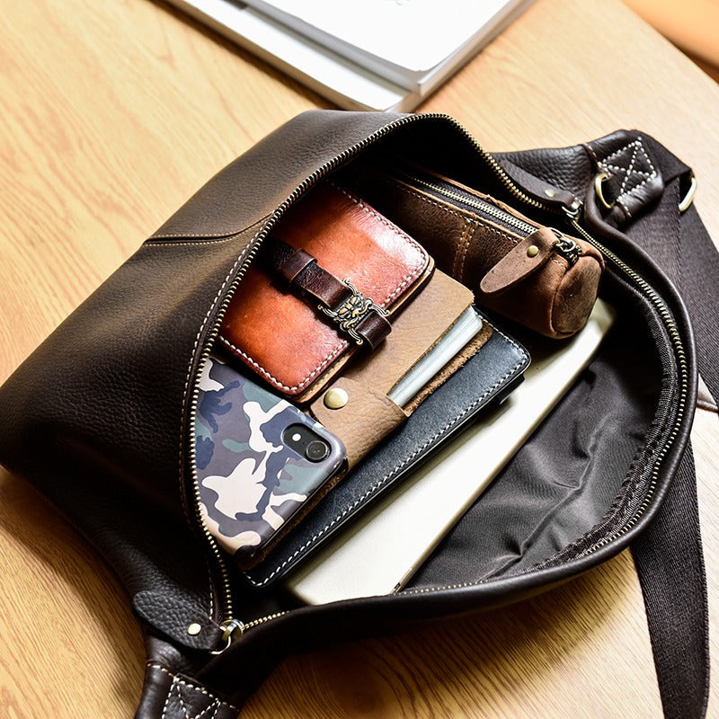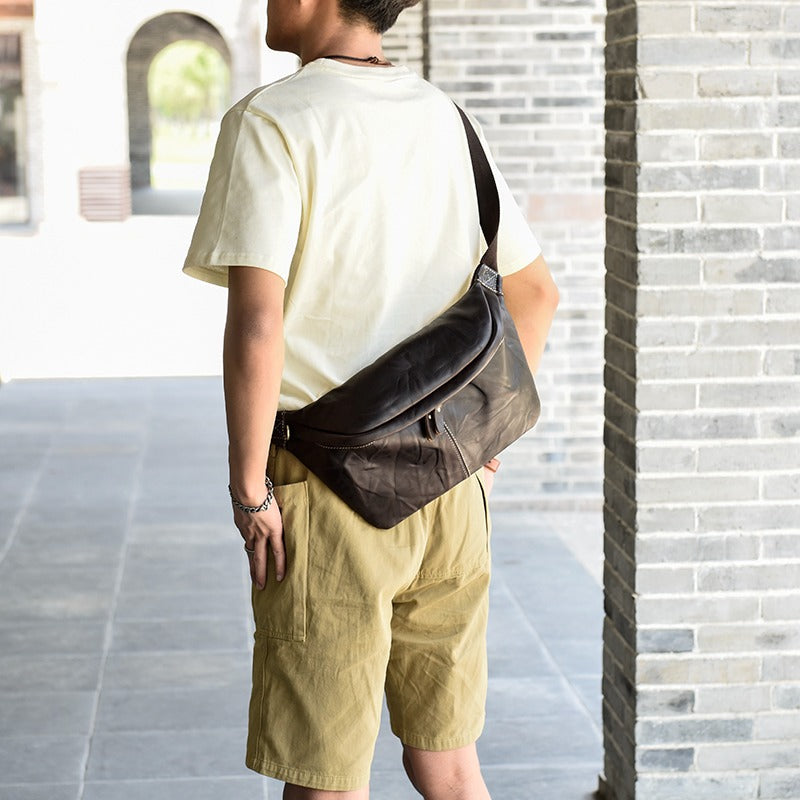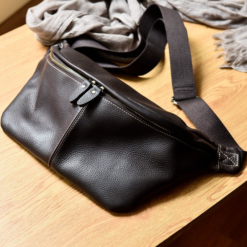 Design: Coffee Leather Fanny Pack Chest Bag Leather Sling Bag Sling Crossbody Packs Hip Pack For Men