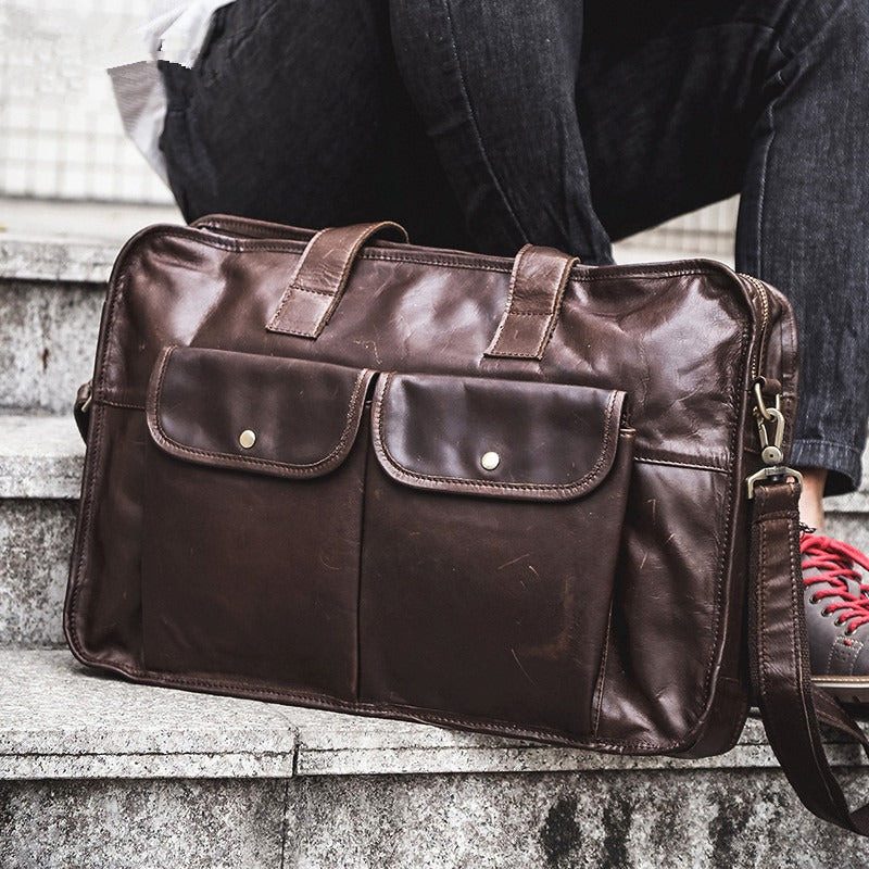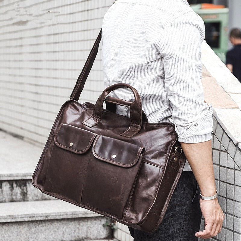 Design: Large Leather Mens Briefcase Work Briefcase Business Briefcase 15.6‘’ Laptop Briefcase For Men