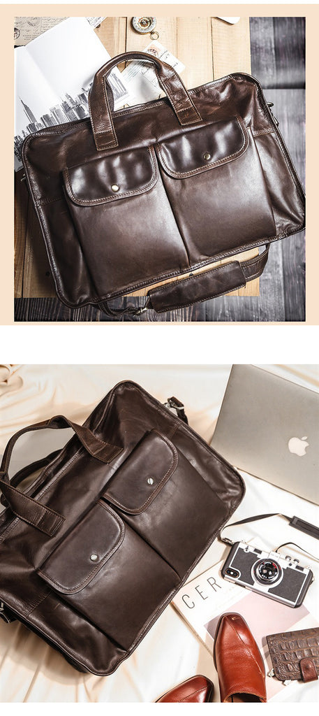Design: Large Leather Mens Briefcase Work Briefcase Business Briefcase 15.6‘’ Laptop Briefcase For MenOverview: