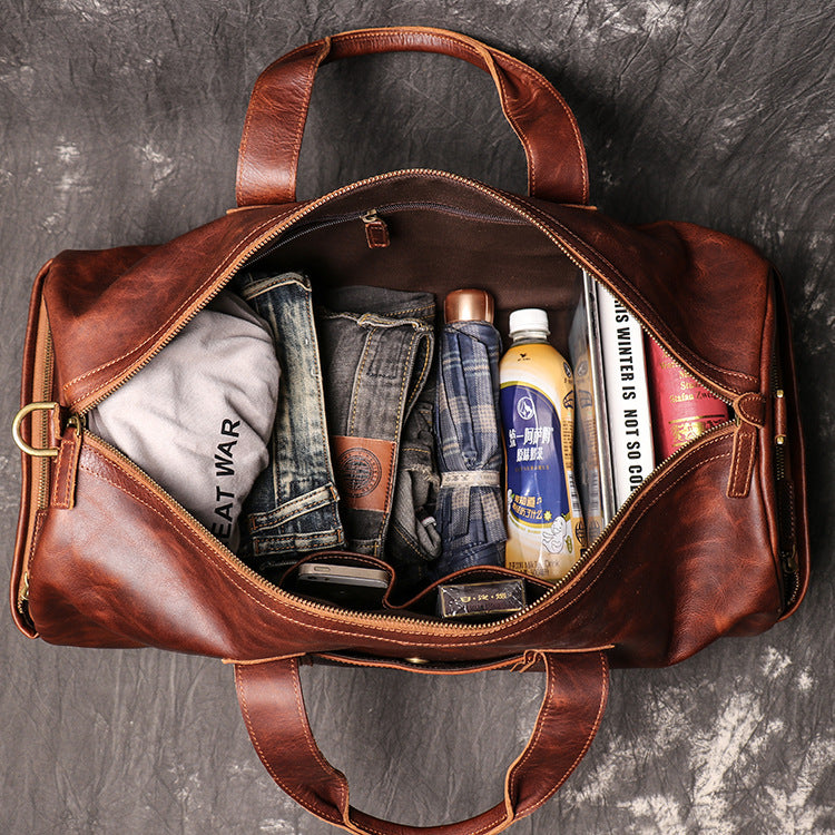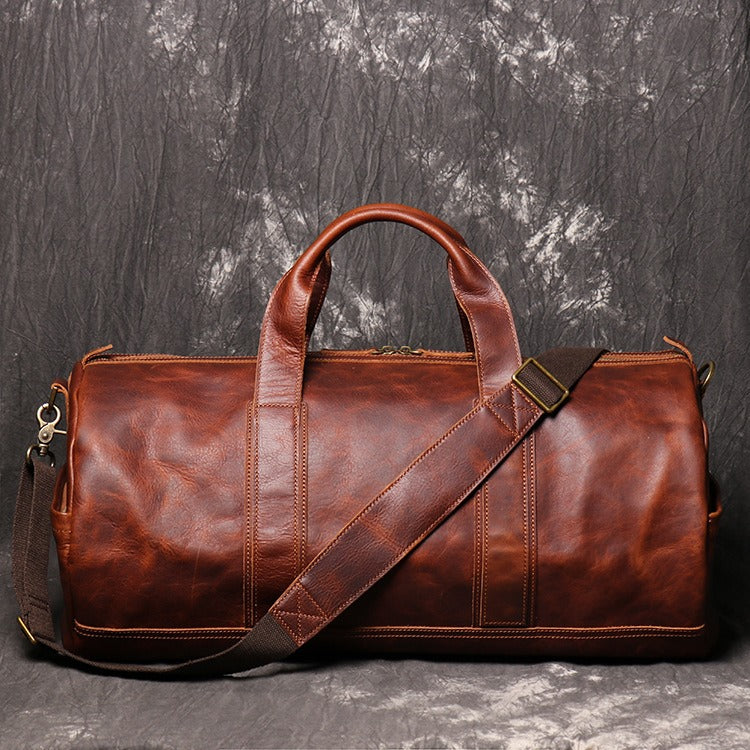 Style: Large Leather Mens Weekender Bag Brown Duffle Bag Overnight Bag Travel Bag for Men
