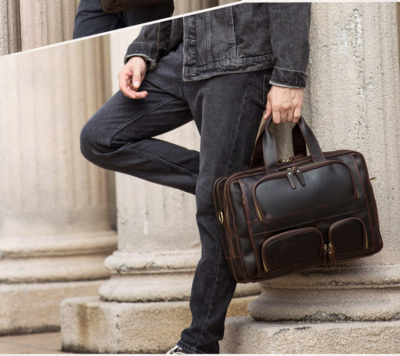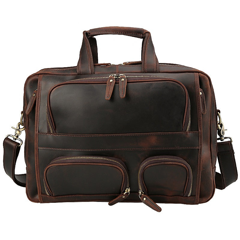 Vintage Leather Men's Briefcase 15‘’ Laptop Briefcase Professional Bag For Men