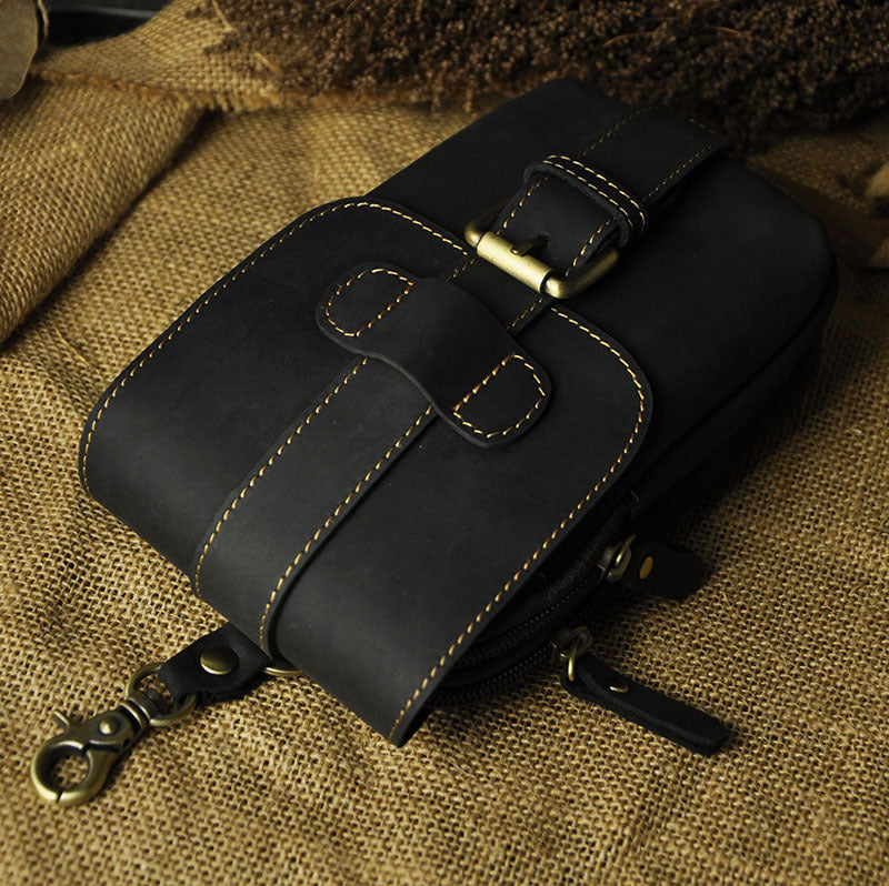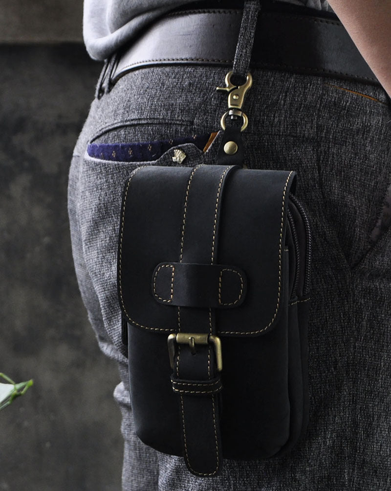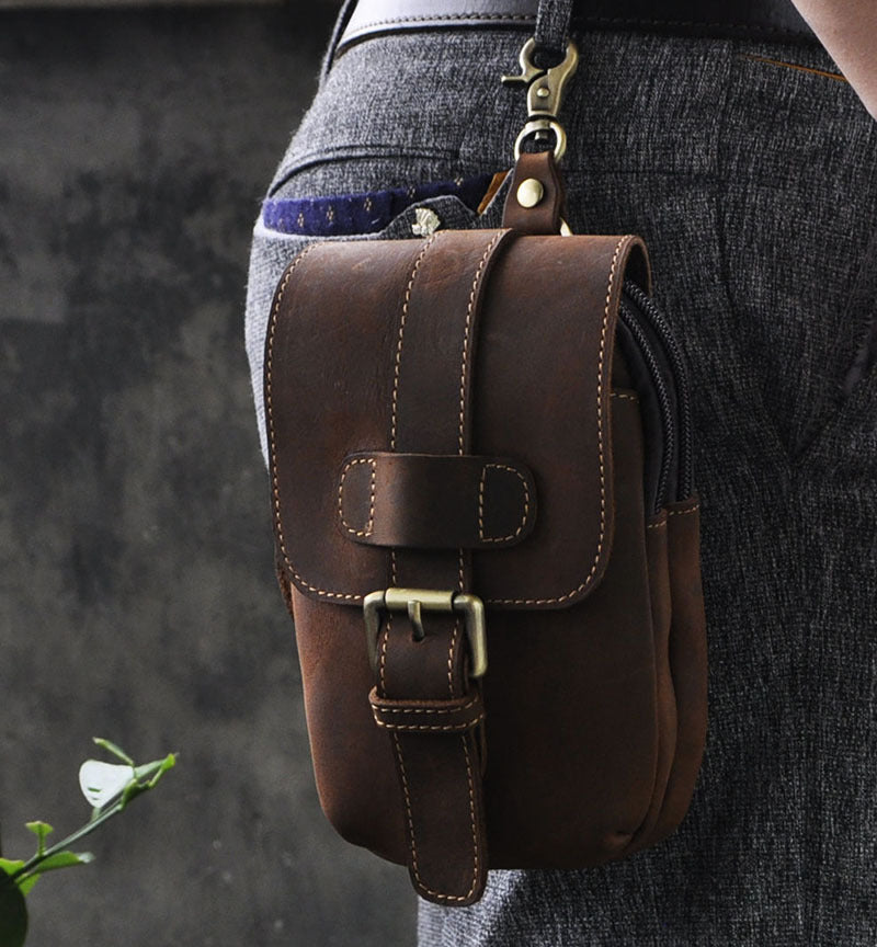 Design: Leather Belt Pouch Mens Waist Bag Small Case for Men
