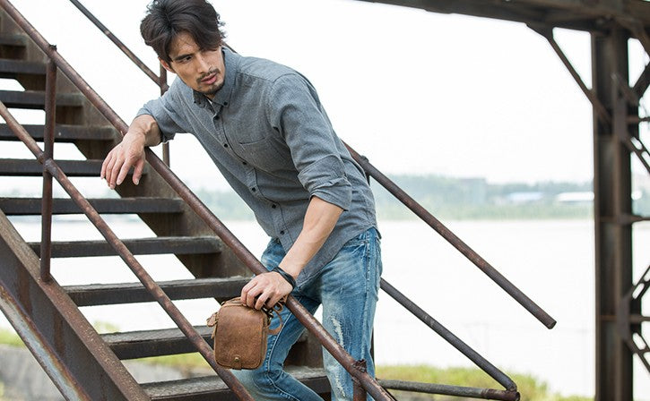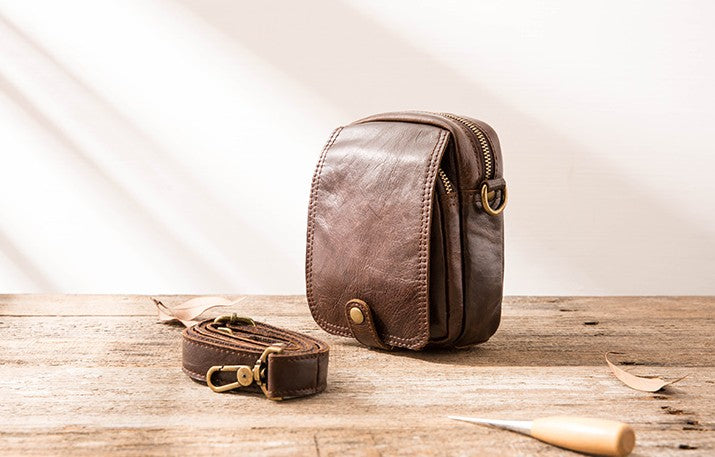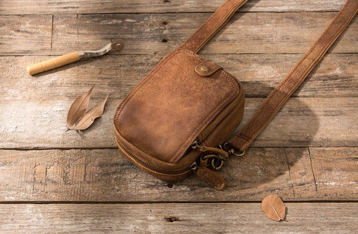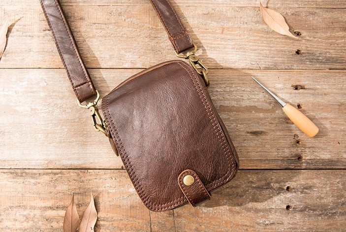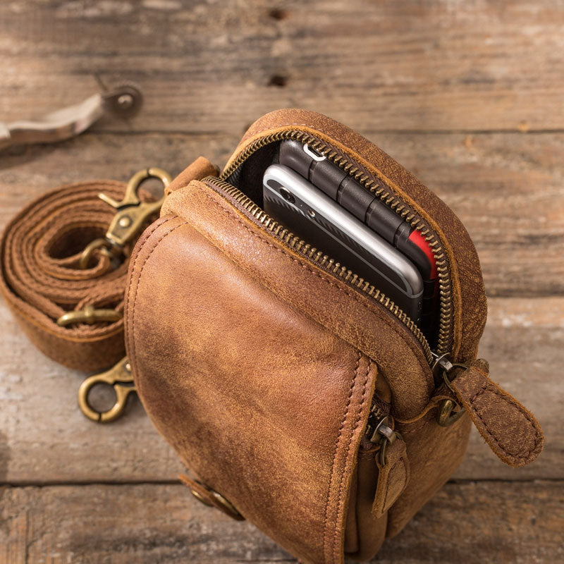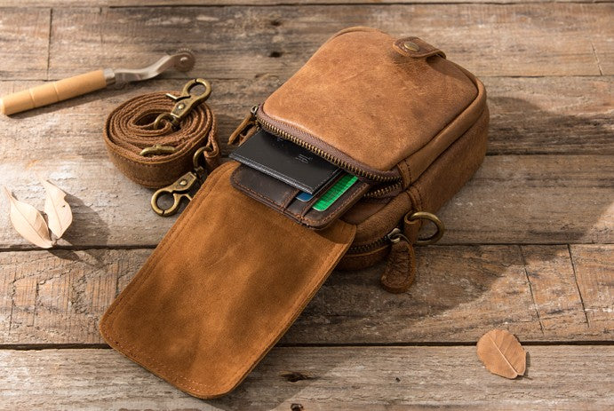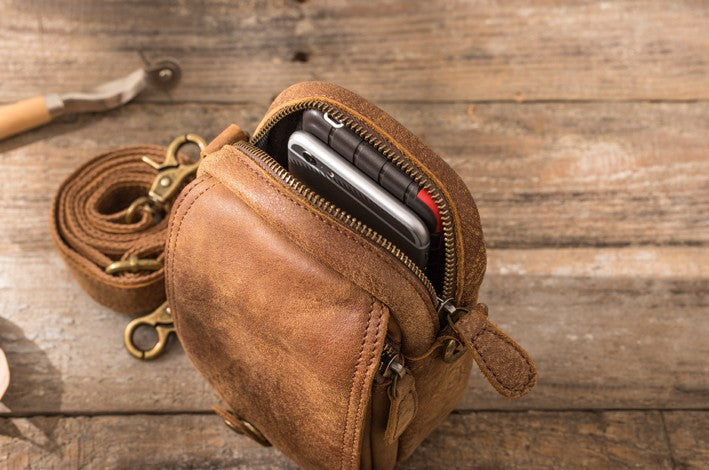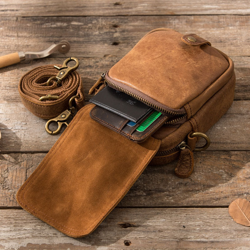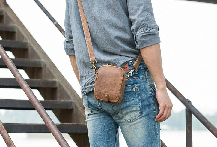 Style: Leather Belt Pouch Phone Case Mens Waist Bag Shoulder Bag for Men