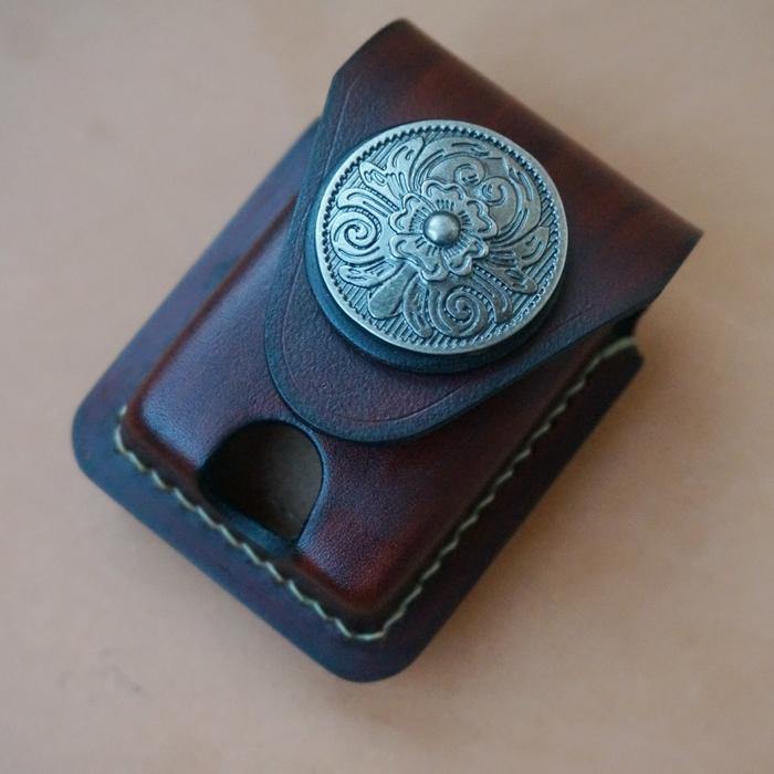 Design: Handmade Red Wine Thick Leather Lighter Cover Protective Lighter Cover For Men