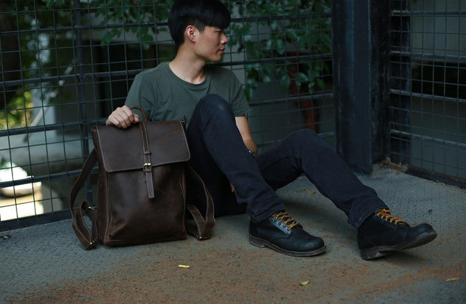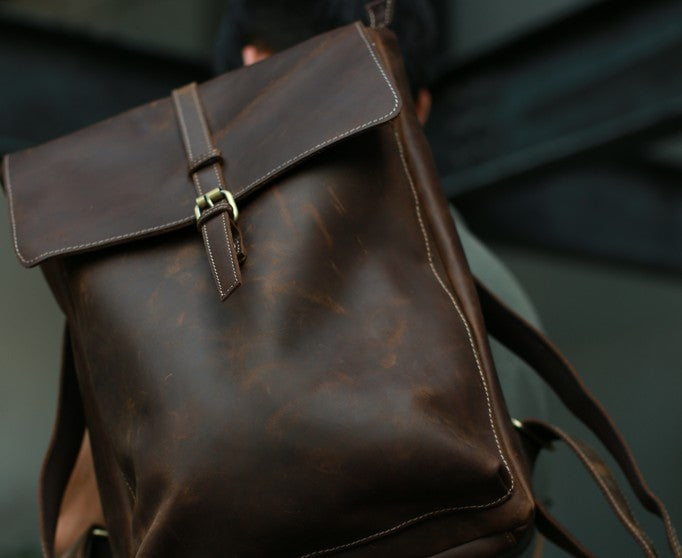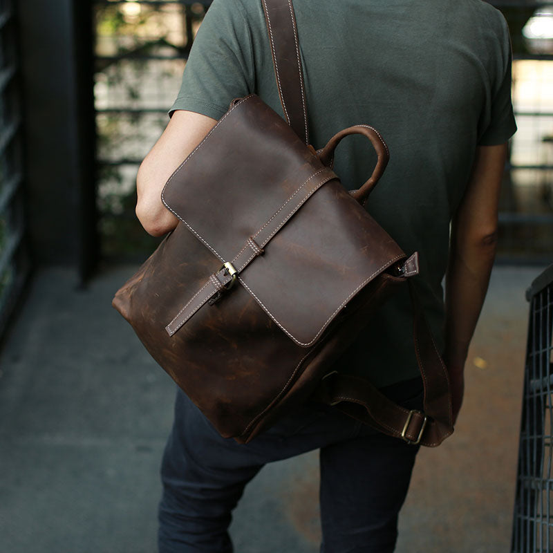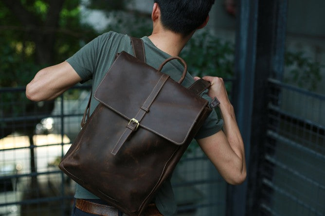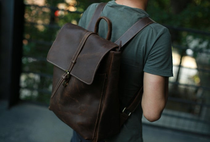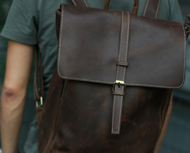 Style: Cool Brown Mens Leather Backpack Travel Backpacks Laptop Backpack for men