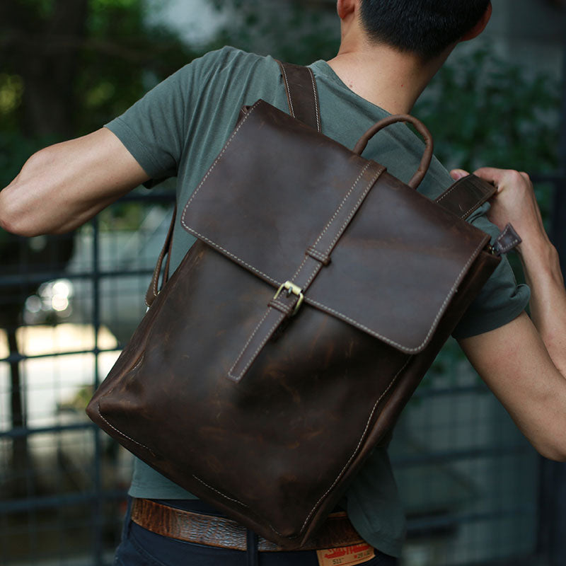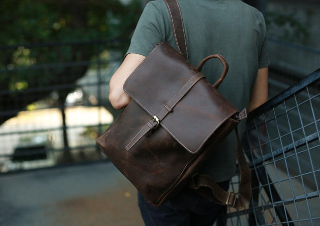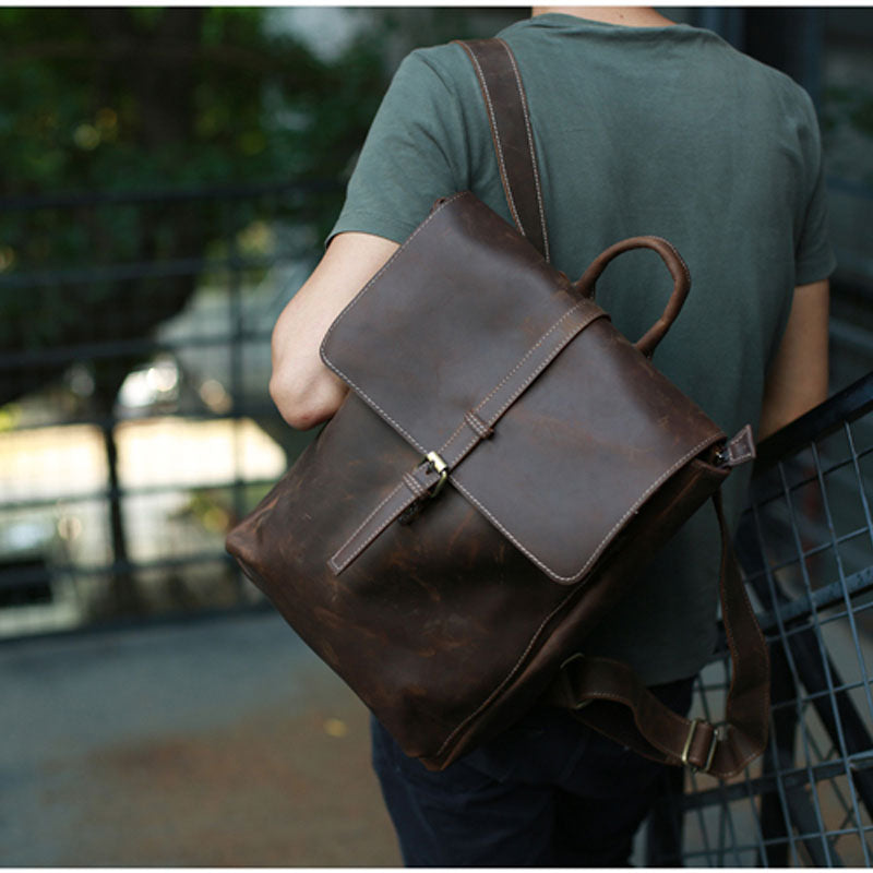 Design: Cool Brown Mens Leather Backpack Travel Backpacks Laptop Backpack for men