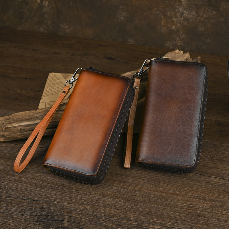 Leather Double Zip Around Wallet for Men Long Mens Double Zip Wallet Wristlet