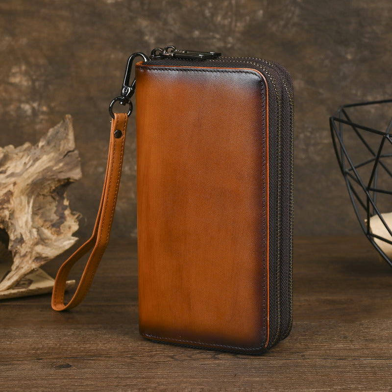 The intelligent design of this Double Zip Around Wallet ensures that everything has its place while maintaining easy accessibility. The accordion-style interior allows the Men's Leather Clutch to expand when needed yet collapse to a sleek profile when not in use. The secure double-zipper closure provides complete protection for your valuables, making this the perfect companion for urban exploration, business travel, or daily commuting.