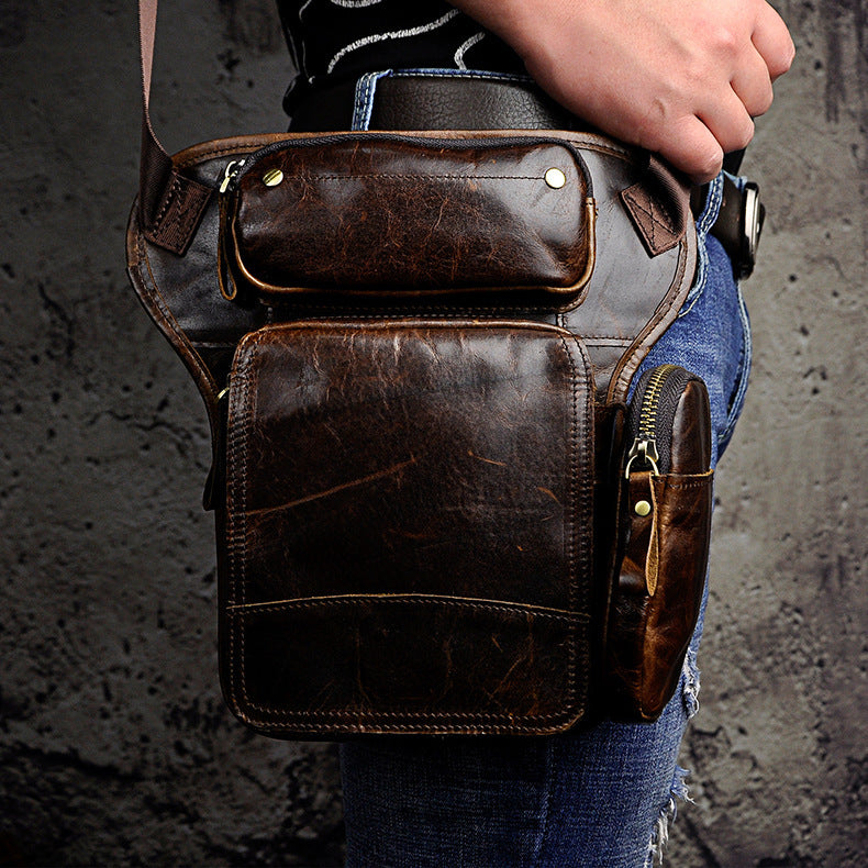 Design: Leather Leg Bag Belt Pouch Mens Waist Bag Shoulder Bag for Men