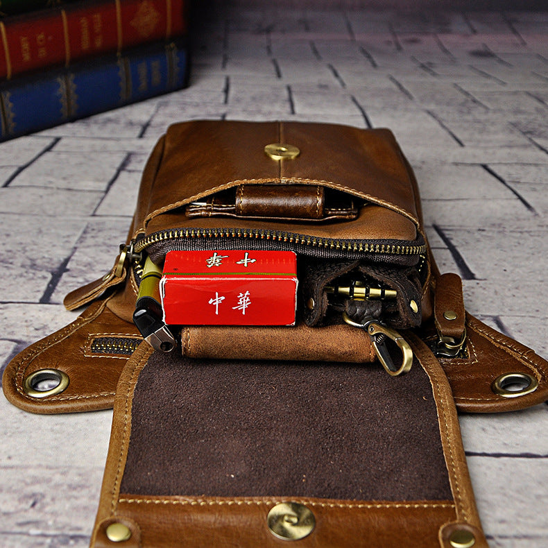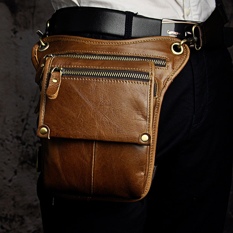Style: Leather Leg Bag Belt Pouch Mens Waist Bag Shoulder Bag for Men