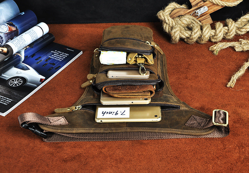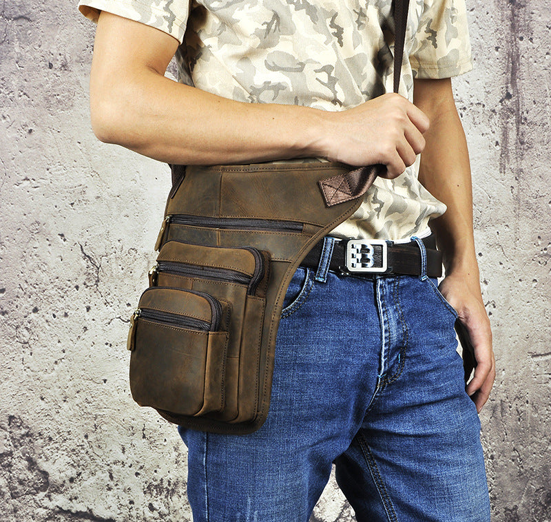 Design: Leather Leg Bag Belt Pouch Mens Waist Bag Shoulder Bag for Men
