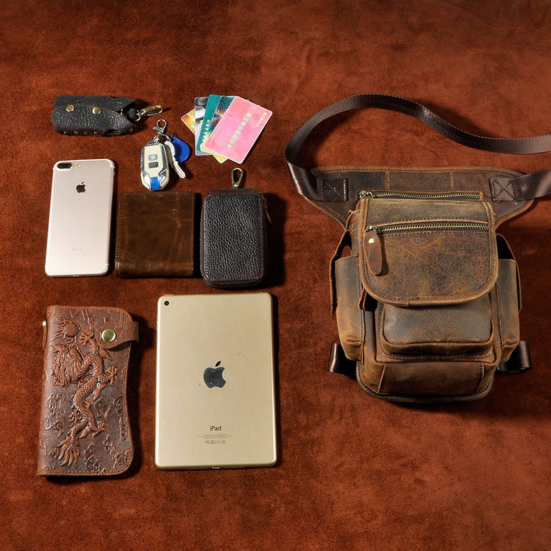Design: Leather Leg Bag Belt Pouch Mens Waist Bag Shoulder Bag for Men