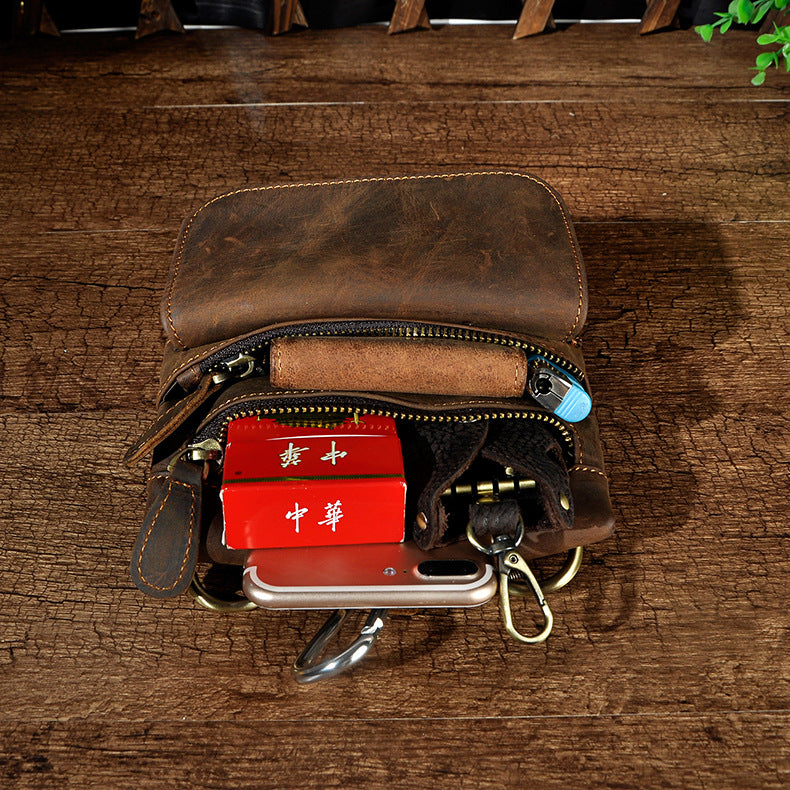 Leather Belt Pouch Mens Waist Bag Shoulder Bag for Men