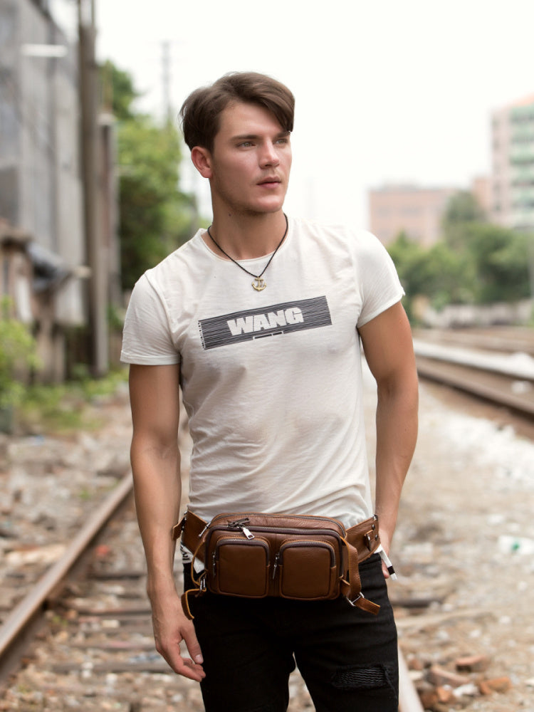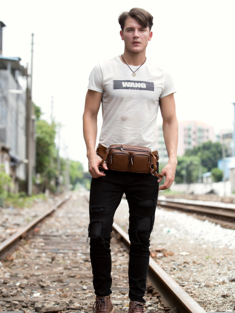 Design: Leather Fanny Pack Mens Waist Bag Hip Pack Belt Bag Bumbag for Men