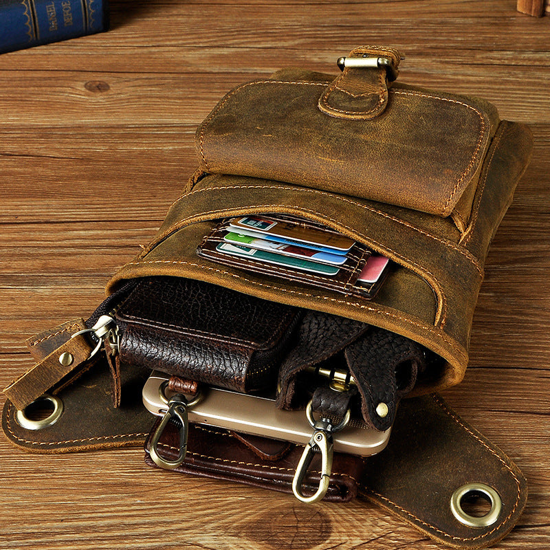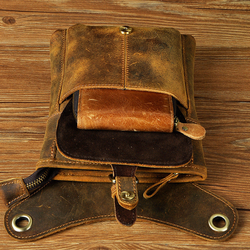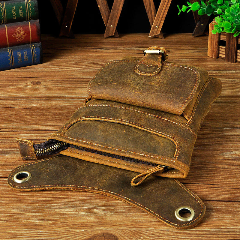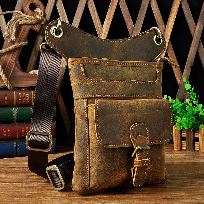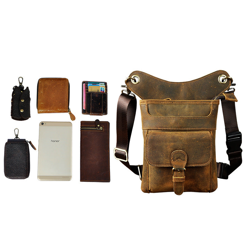 Design: Leather Leg Bag Belt Pouch Mens Waist Bag Shoulder Bag for Men