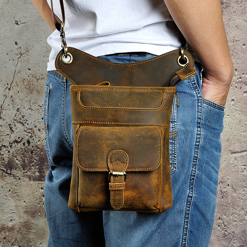 Style: Leather Leg Bag Belt Pouch Mens Waist Bag Shoulder Bag for Men