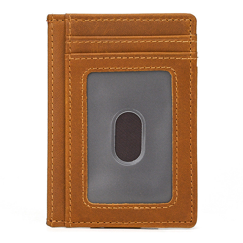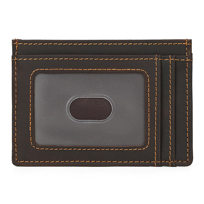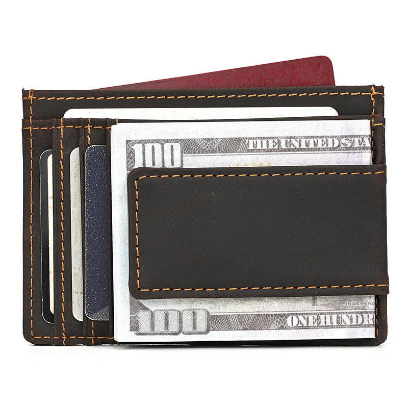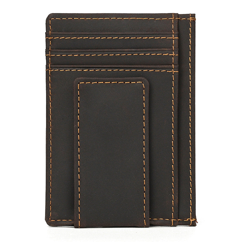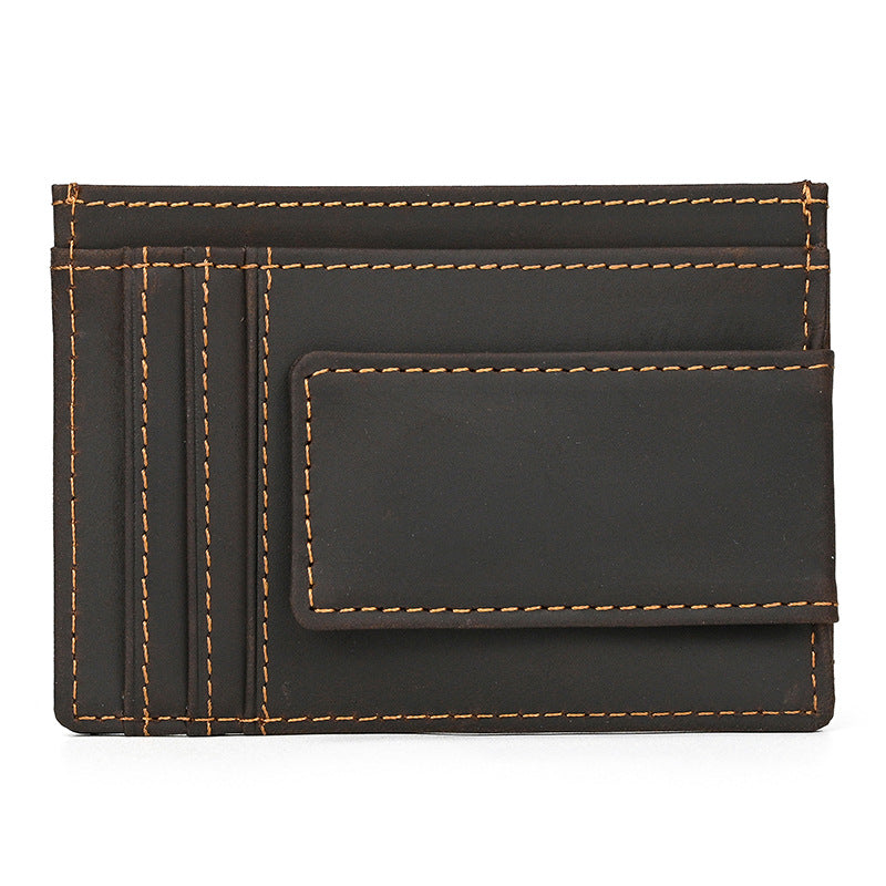 Discover the perfect fusion of minimalist design and functional elegance with our Leather Magnetic Money Clip Wallet, an expertly crafted accessory that redefines slim-profile carry. This sophisticated Card Holder Wallet with Money Clip measures an remarkably slender 11.3cm x 8cm x 0.3cm, meticulously fashioned from premium full-grain crazy horse leather in two rich, masculine shades—Brown and Coffee Brown. Designed for the modern man who values both style and practicality, this ultra-thin Magnetic Money Clip Wallet features five card slots, a clear ID window, and a innovative magnetic money clip that keeps your currency secure and accessible without adding bulk.