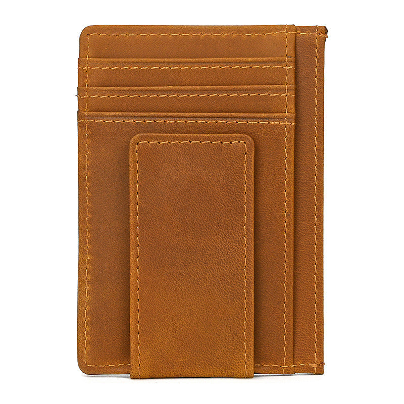 Brown Leather Magnetic Money Clip Wallet Card Holder wallet with Money Clip
