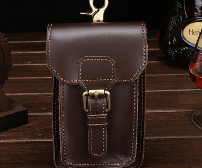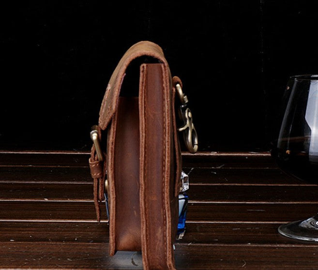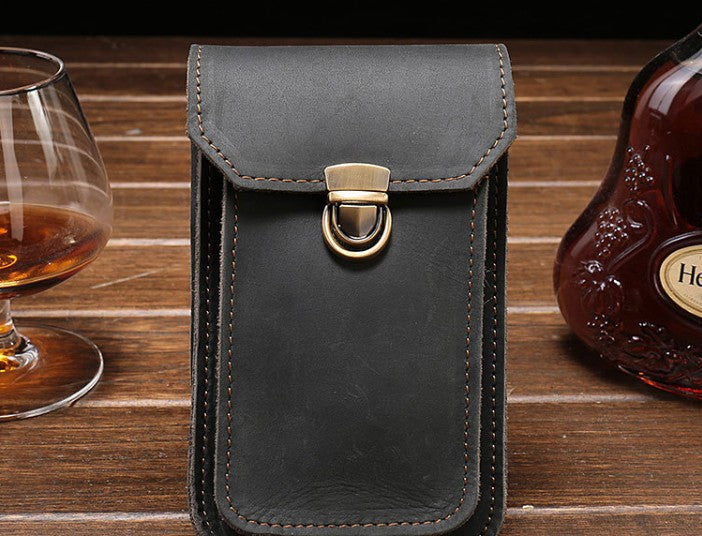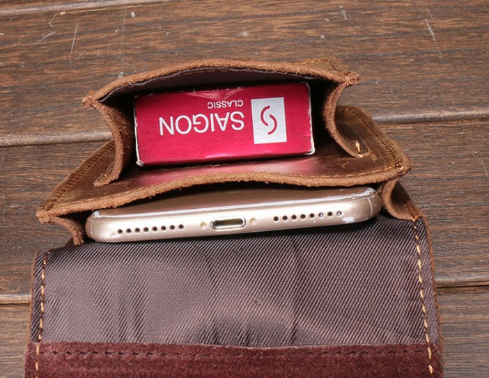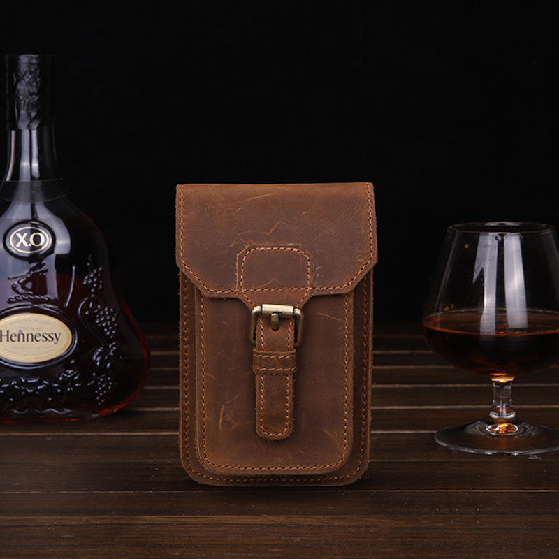 Design: Leather Mens Cigarette Case with Belt Loop Cell Phone Holster Belt Pouch for Men