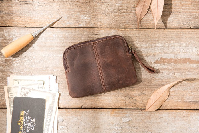 Design: Leather Mens Coin Holders Slim Front Pocket Wallet Change Wallet for Men