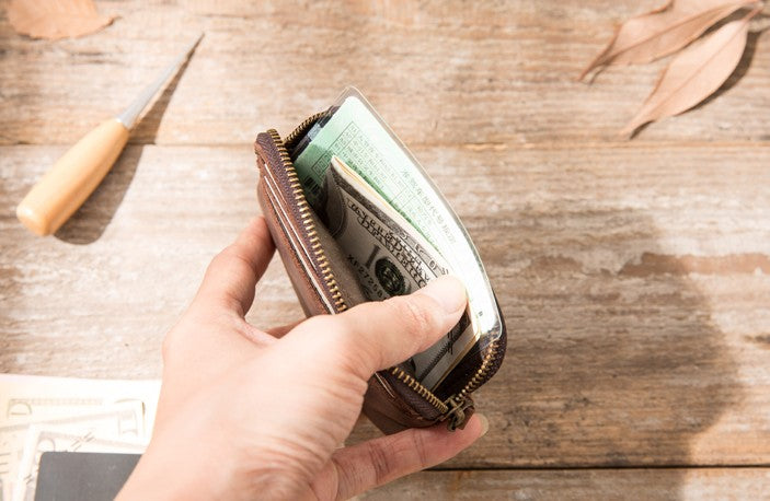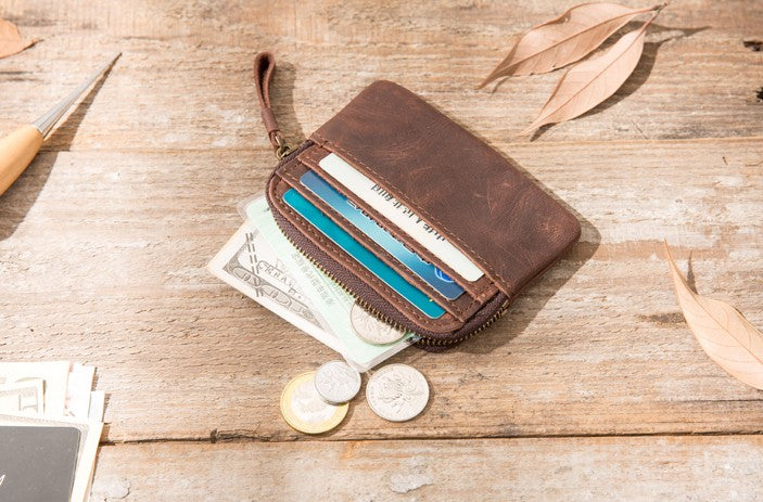 Style: Leather Mens Coin Holders Slim Front Pocket Wallet Change Wallet for Men