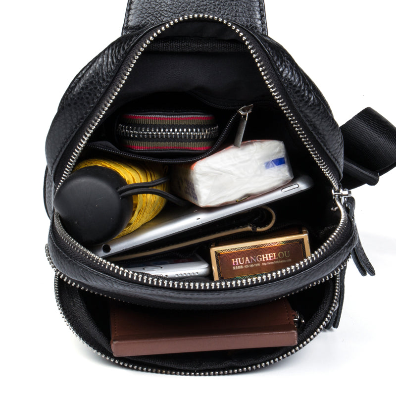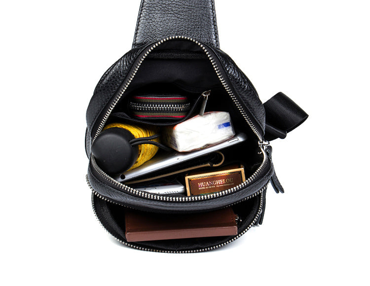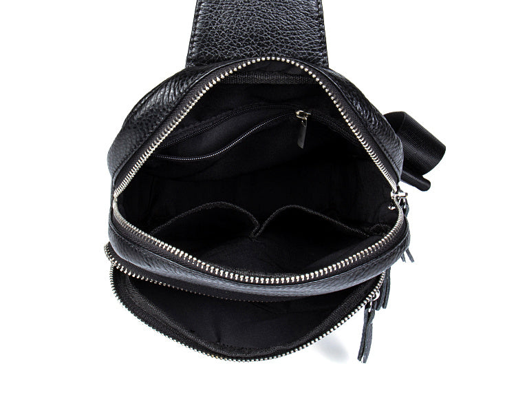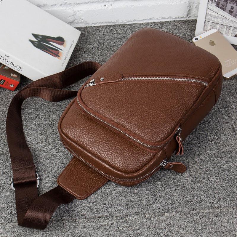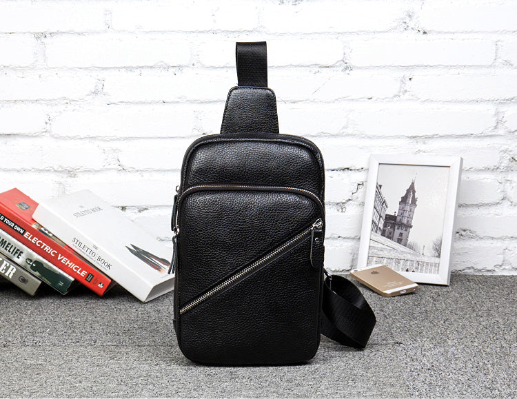 Style: Leather Mens Cool Sling Bag Crossbody Bag Chest Bag for men