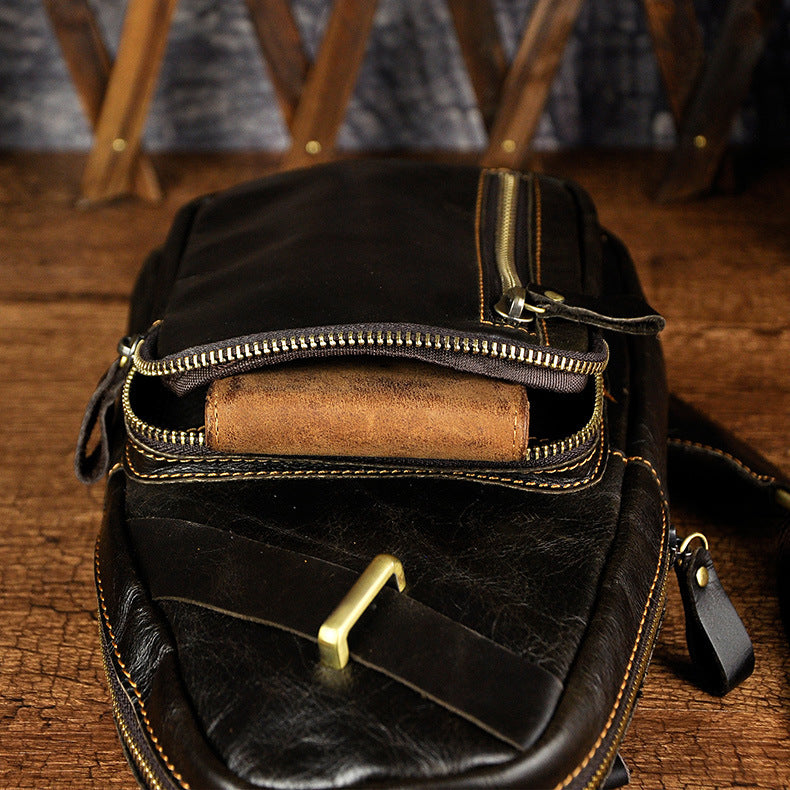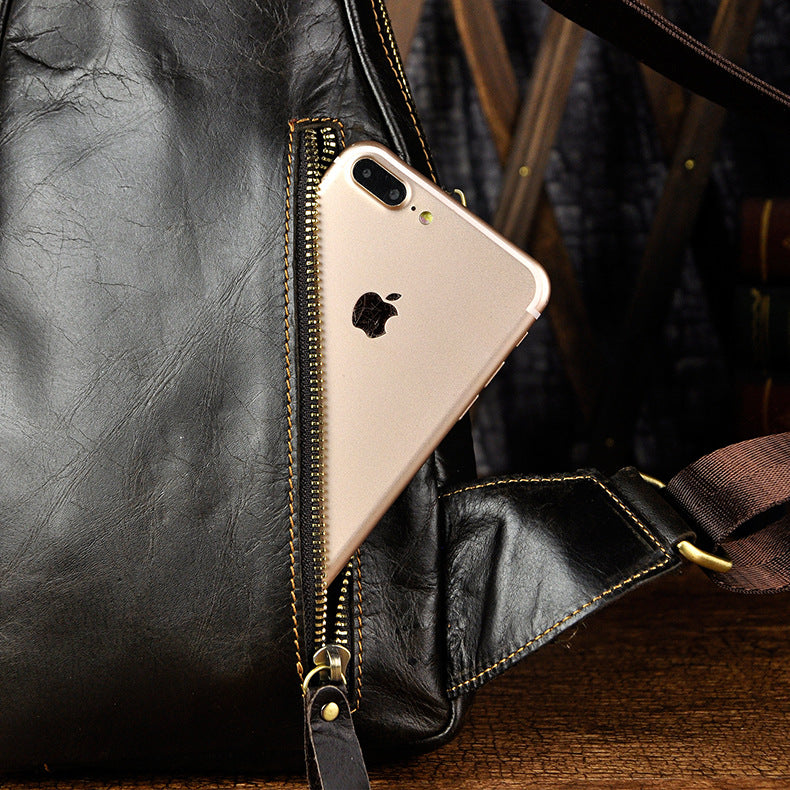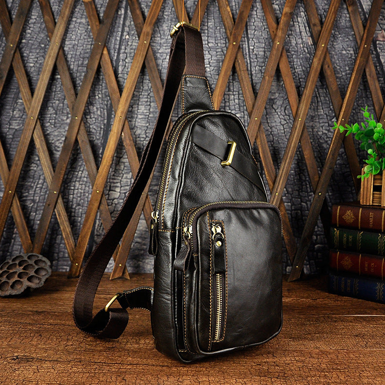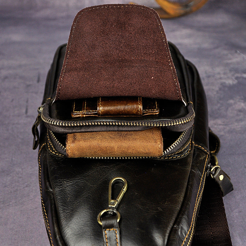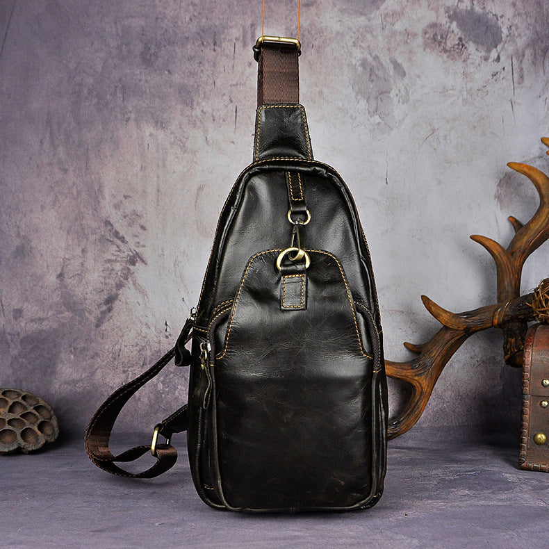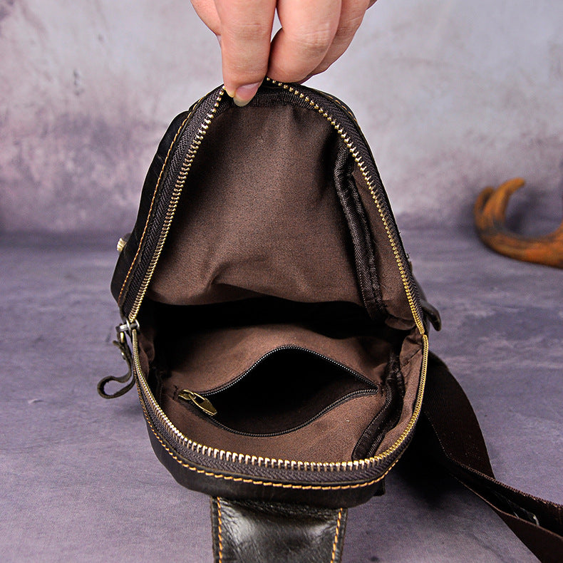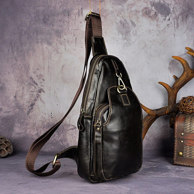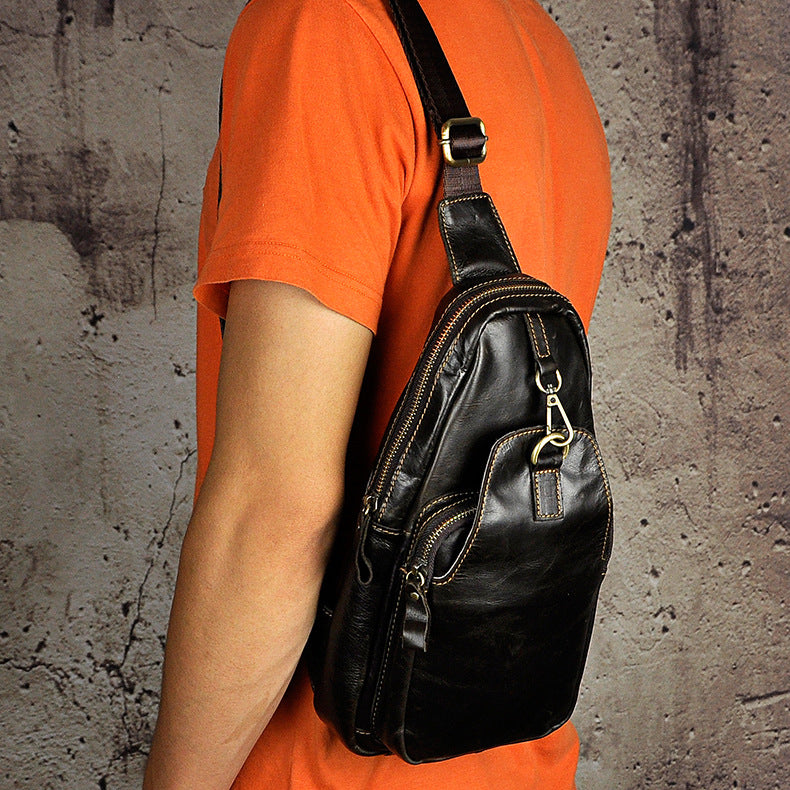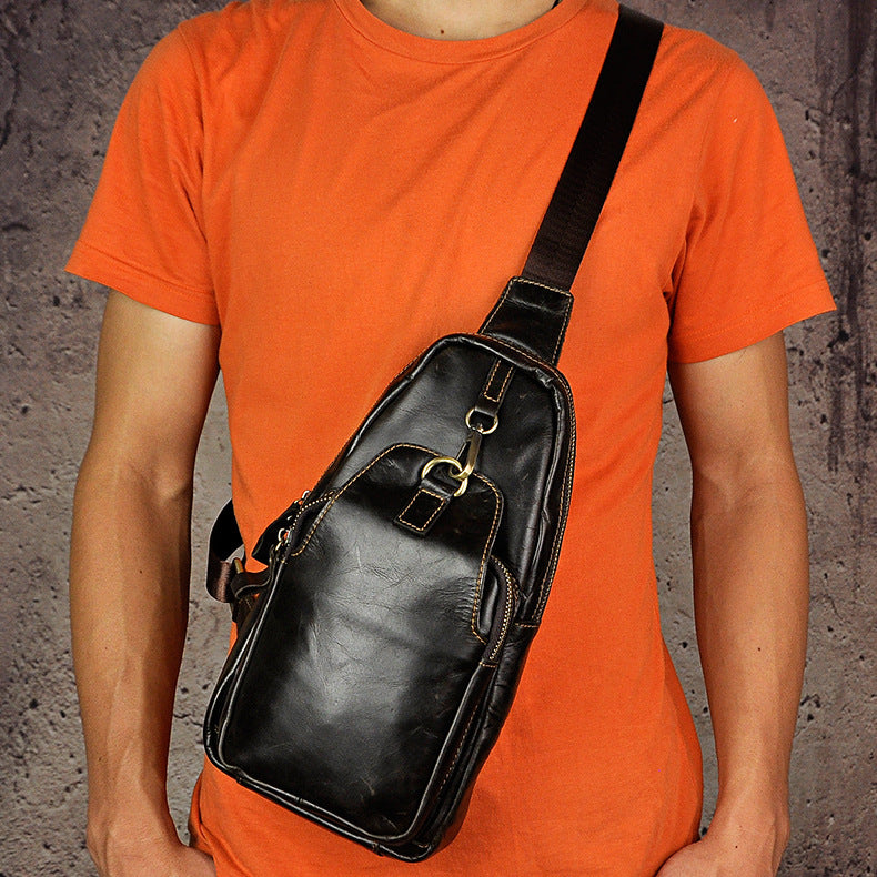 Leather Mens Cool Sling Bag Crossbody Bag Chest Bag for men