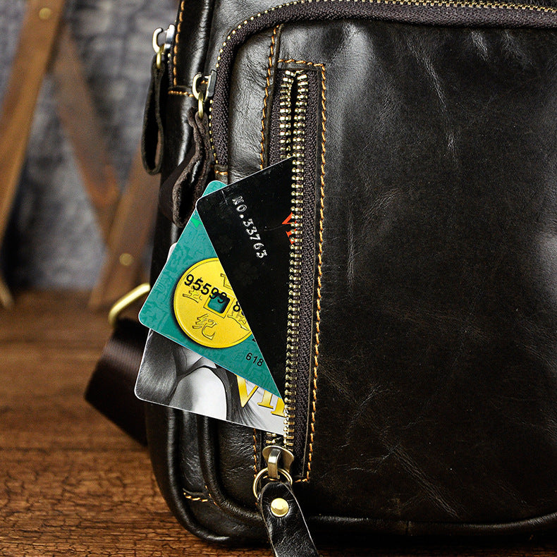 Style: Leather Mens Cool Sling Bag Crossbody Bag Chest Bag for men