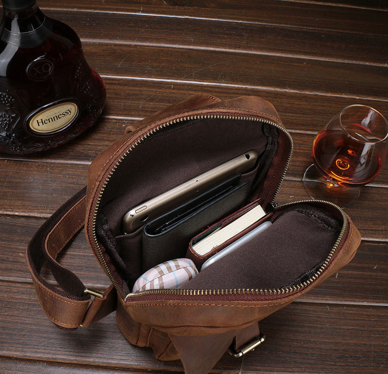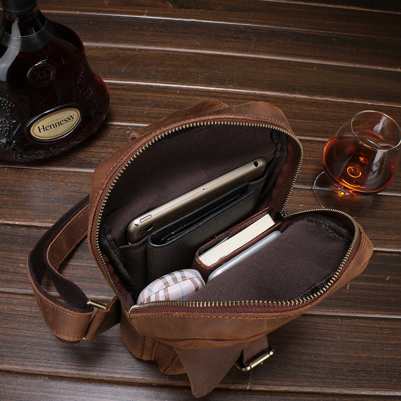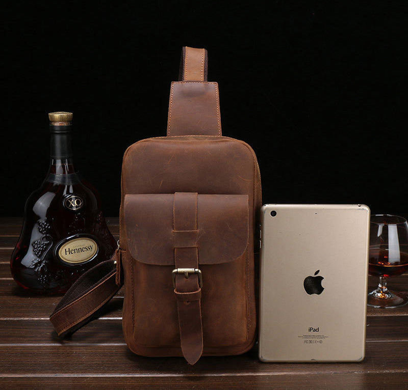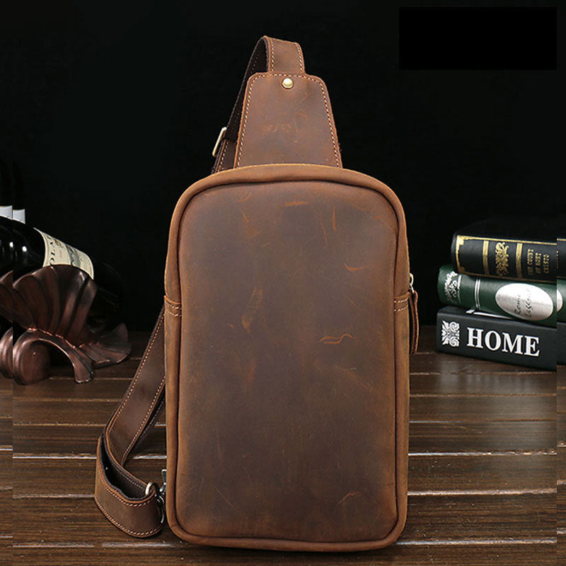 Style: Leather Mens Cool Sling Bag Crossbody Bag Chest Bag for men